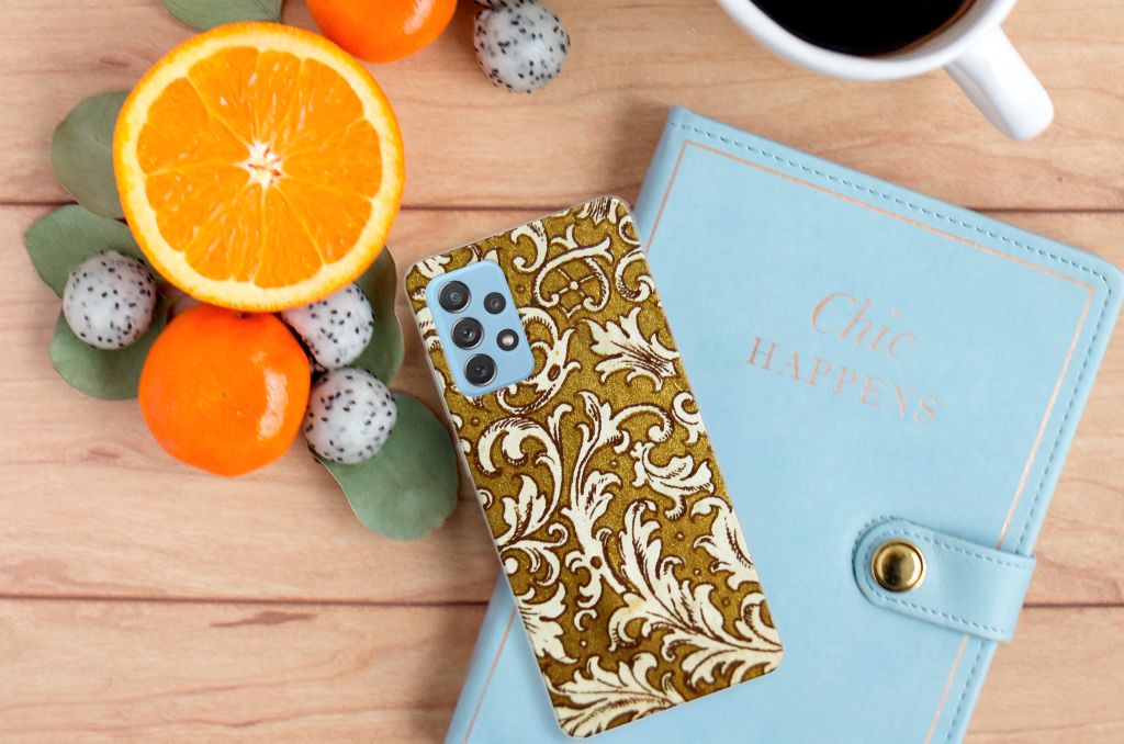 Dit super degelijke en prachtige Samsung Galaxy A72 Siliconen Hoesje met Barok Goud als achtergrond is een perfecte bescherming voor jouw smartphone. Het goud gecombineerd met opvallende tekeningen wordt op een tpu case gezet en is van toegevoegde waarde voor jouw toestel. Het bedrukken doen we in ons eigen magazijn, zodat we de kwaliteit van de case met barok goud achtergrond kunnen garanderen. Dit tpu hoesje in barok goud is perfect op maat gemaakt en heeft een mooie uitstraling. Daarnaast is de gouden case zeer flexibel en het materiaal onbreekbaar. De case in goud heeft opstaande randen ter bescherming van het scherm. De randen van het tpu hoesje barok worden niet in goud bedrukt.