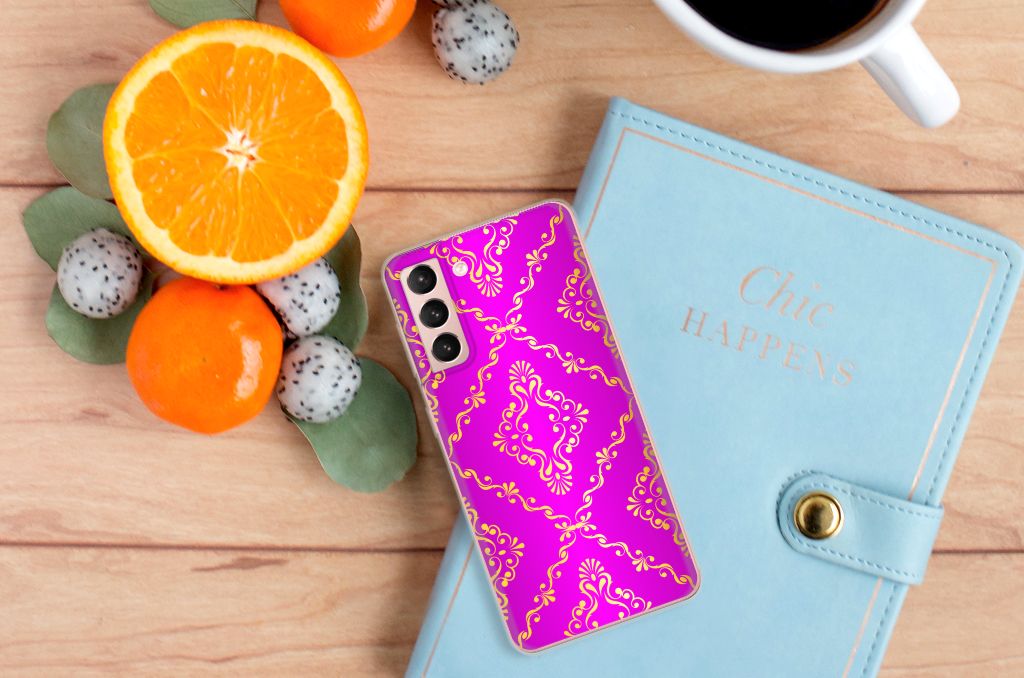 Dit super mooie Samsung Galaxy S21 Siliconen Hoesje met Barok Roze achtergrond is een geweldige en duurzame bescherming voor jouw smartphone. De roze kleuren en figuren worden met de grootst mogelijke zorg op het hoesje gezet en op de achterkant bedrukt. Dit drukwerk doen we in ons eigen magazijn, zodat we de kwaliteit van het tpu hoesje met roze barok achtergrond kunnen garanderen. Een tpu hoesje is perfect op maat gemaakt en heeft een mooie uitstraling. Daarnaast is de case zeer flexibel en het materiaal onbreekbaar. De case heeft opstaande randen ter bescherming van het scherm. De randen van het tpu hoesje worden niet in roze barok bedrukt. Nergens anders tref je een tpu hoesje met roze barok achtergrond aan dat zo goed past bij jouw smartphone.