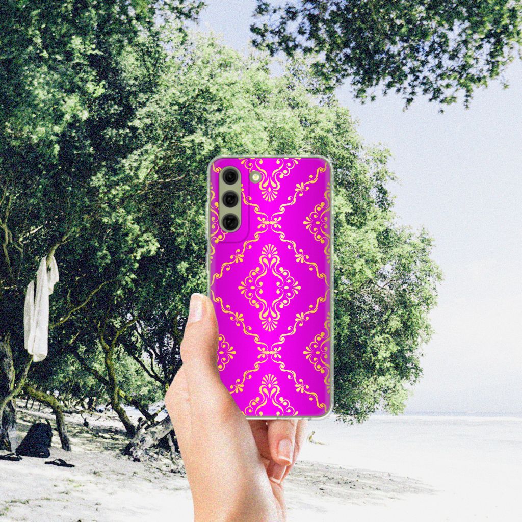 Dit super mooie Samsung Galaxy S21FE Siliconen Hoesje met Barok Roze achtergrond is een geweldige en duurzame bescherming voor jouw smartphone. De roze kleuren en figuren worden met de grootst mogelijke zorg op het hoesje gezet en op de achterkant bedrukt. Dit drukwerk doen we in ons eigen magazijn, zodat we de kwaliteit van het tpu hoesje met roze barok achtergrond kunnen garanderen. Een tpu hoesje is perfect op maat gemaakt en heeft een mooie uitstraling. Daarnaast is de case zeer flexibel en het materiaal onbreekbaar. De case heeft opstaande randen ter bescherming van het scherm. De randen van het tpu hoesje worden niet in roze barok bedrukt. Nergens anders tref je een tpu hoesje met roze barok achtergrond aan dat zo goed past bij jouw smartphone.