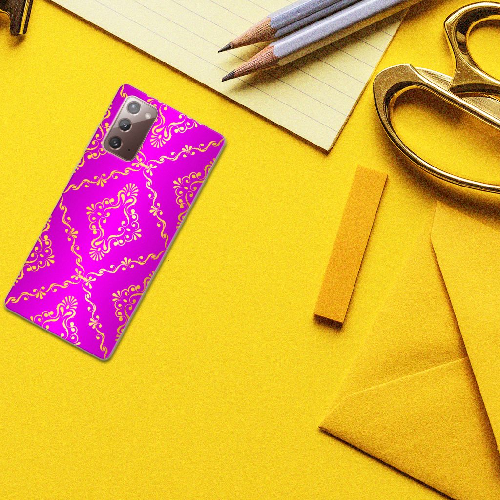 Dit super mooie Samsung Note 20 Siliconen Hoesje met Barok Roze achtergrond is een geweldige en duurzame bescherming voor jouw smartphone. De roze kleuren en figuren worden met de grootst mogelijke zorg op het hoesje gezet en op de achterkant bedrukt. Dit drukwerk doen we in ons eigen magazijn, zodat we de kwaliteit van het tpu hoesje met roze barok achtergrond kunnen garanderen. Een tpu hoesje is perfect op maat gemaakt en heeft een mooie uitstraling. Daarnaast is de case zeer flexibel en het materiaal onbreekbaar. De case heeft opstaande randen ter bescherming van het scherm. De randen van het tpu hoesje worden niet in roze barok bedrukt. Nergens anders tref je een tpu hoesje met roze barok achtergrond aan dat zo goed past bij jouw smartphone.