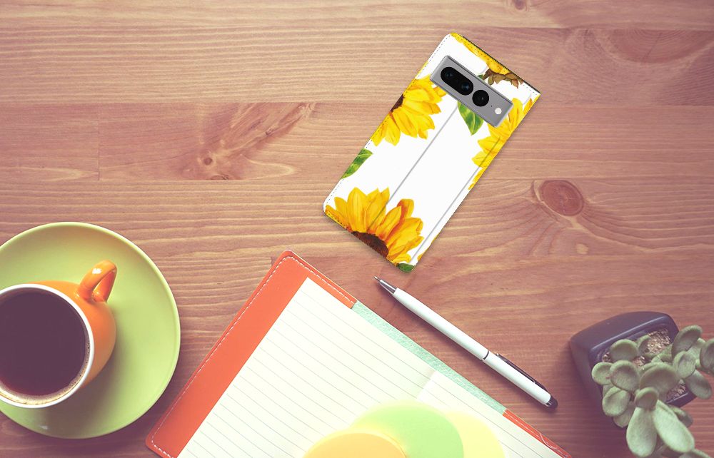 Een zonnebloem is niet alleen mooi, maar ook nog eens slim. Wist je dat de bloem draait naar de kant waar de zon schijnt? Daarom staat de zonnebloem voor veel mensen symbool voor de zomer. Wat ons betreft schijnt de zon altijd met dit mooie zonnebloemen hoesje voor jouw Google Pixel 7 Pro. Dit zonnige zonnebloemen design wordt geprint op een Smart Cover waarin je een pasje kwijt kunt. Vouw het hoesje om en zet het horizontaal neer voor als je graag filmpjes op je Google Pixel 7 Pro kijkt. De magneten aan de binnenkant zorgen ervoor dat het hoesje dicht blijft in bijv. je tas. Bestel vandaag nog dit Zonnebloemen design hoesje voor je smartphone.