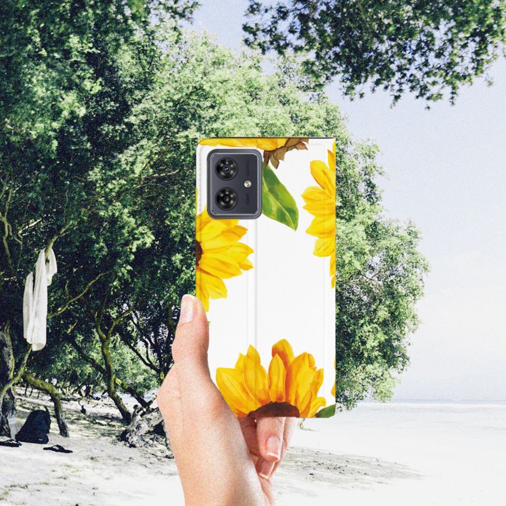 Een zonnebloem is niet alleen mooi, maar ook nog eens slim. Wist je dat de bloem draait naar de kant waar de zon schijnt? Daarom staat de zonnebloem voor veel mensen symbool voor de zomer. Wat ons betreft schijnt de zon altijd met dit mooie zonnebloemen hoesje voor jouw Motorola Moto G54. Dit zonnige zonnebloemen design wordt geprint op een Smart Cover waarin je een pasje kwijt kunt. Vouw het hoesje om en zet het horizontaal neer voor als je graag filmpjes op je Motorola Moto G54 kijkt. De magneten aan de binnenkant zorgen ervoor dat het hoesje dicht blijft in bijv. je tas. Bestel vandaag nog dit Zonnebloemen design hoesje voor je smartphone.