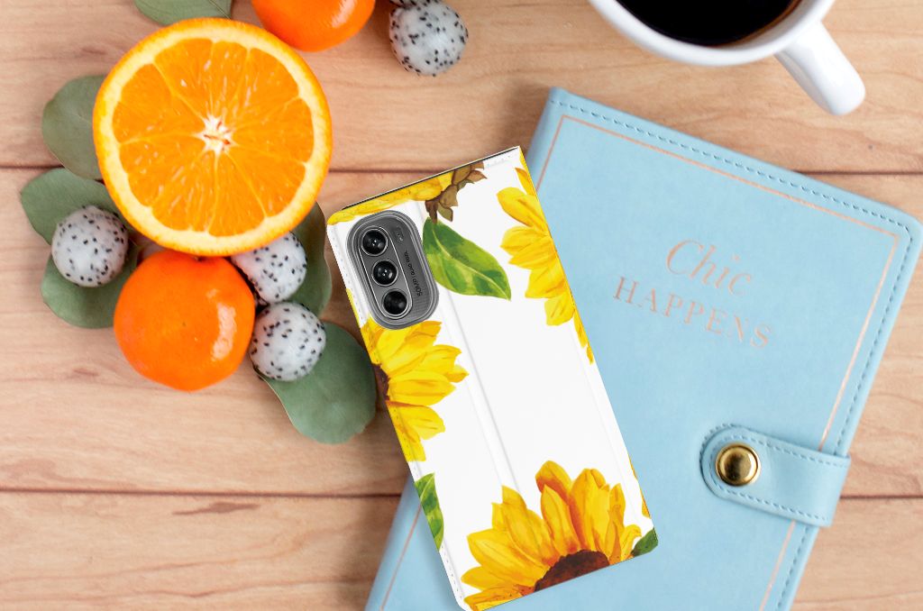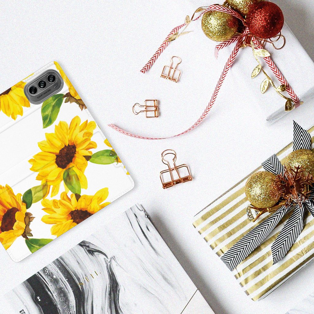 Een zonnebloem is niet alleen mooi, maar ook nog eens slim. Wist je dat de bloem draait naar de kant waar de zon schijnt? Daarom staat de zonnebloem voor veel mensen symbool voor de zomer. Wat ons betreft schijnt de zon altijd met dit mooie zonnebloemen hoesje voor jouw Motorola Moto G62 5G. Dit zonnige zonnebloemen design wordt geprint op een Smart Cover waarin je een pasje kwijt kunt. Vouw het hoesje om en zet het horizontaal neer voor als je graag filmpjes op je Motorola Moto G62 5G kijkt. De magneten aan de binnenkant zorgen ervoor dat het hoesje dicht blijft in bijv. je tas. Bestel vandaag nog dit Zonnebloemen design hoesje voor je smartphone.