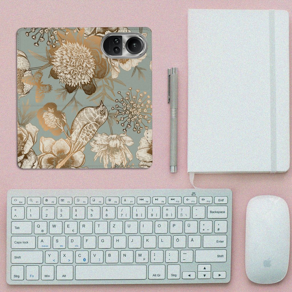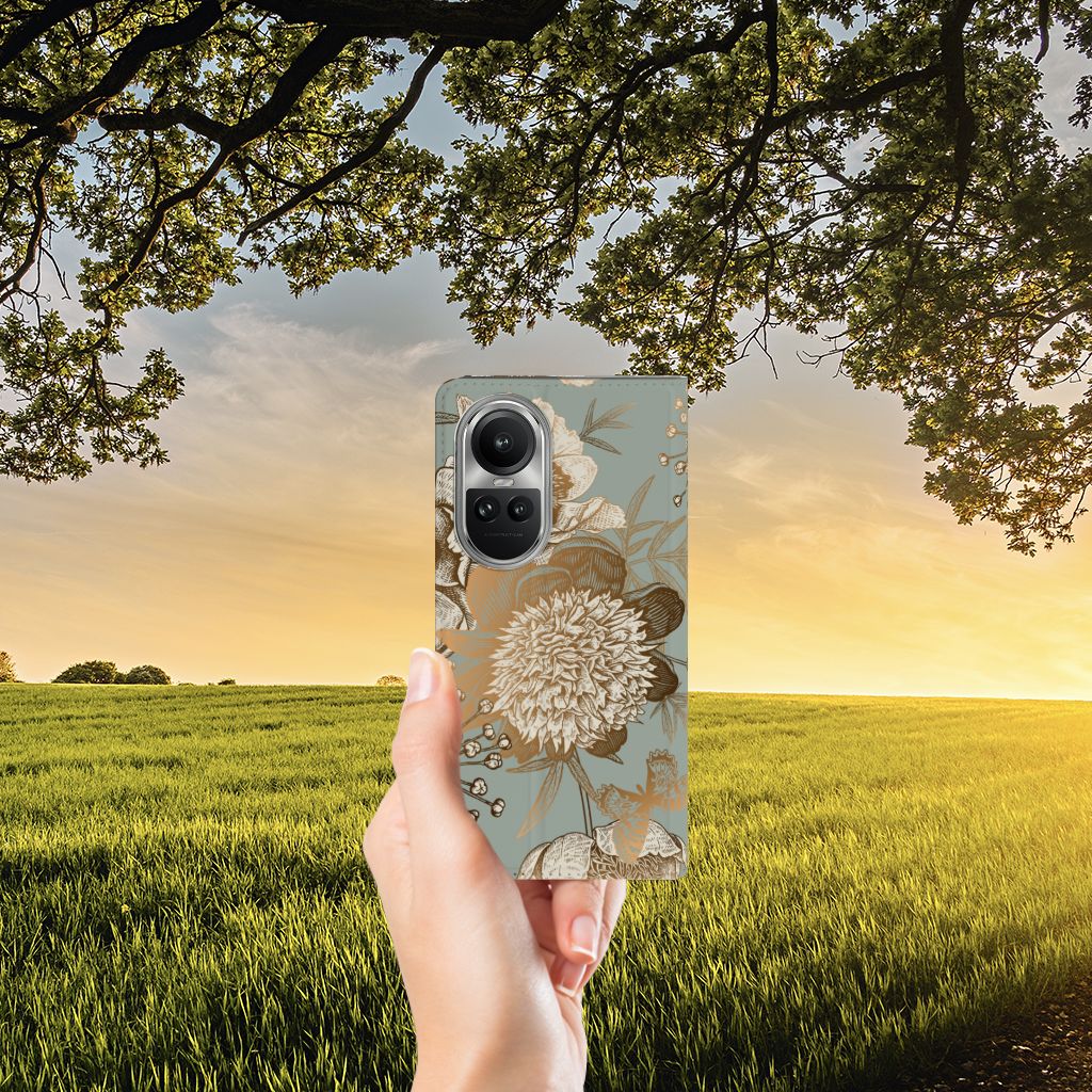 OPPO Reno10 | 10 Pro Telefoonhoesje met Pasjes Pauw met Bloemen