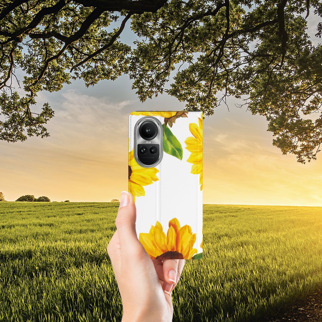 Een zonnebloem is niet alleen mooi, maar ook nog eens slim. Wist je dat de bloem draait naar de kant waar de zon schijnt? Daarom staat de zonnebloem voor veel mensen symbool voor de zomer. Wat ons betreft schijnt de zon altijd met dit mooie zonnebloemen hoesje voor jouw OPPO Reno10 | 10 Pro. Dit zonnige zonnebloemen design wordt geprint op een Smart Cover waarin je een pasje kwijt kunt. Vouw het hoesje om en zet het horizontaal neer voor als je graag filmpjes op je OPPO Reno10 | 10 Pro kijkt. De magneten aan de binnenkant zorgen ervoor dat het hoesje dicht blijft in bijv. je tas. Bestel vandaag nog dit Zonnebloemen design hoesje voor je smartphone.