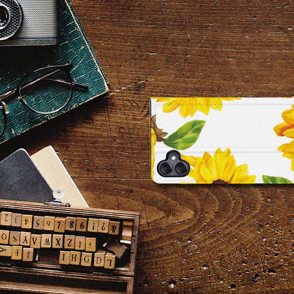 Een zonnebloem is niet alleen mooi, maar ook nog eens slim. Wist je dat de bloem draait naar de kant waar de zon schijnt? Daarom staat de zonnebloem voor veel mensen symbool voor de zomer. Wat ons betreft schijnt de zon altijd met dit mooie zonnebloemen hoesje voor jouw Samsung Galaxy A05. Dit zonnige zonnebloemen design wordt geprint op een Smart Cover waarin je een pasje kwijt kunt. Vouw het hoesje om en zet het horizontaal neer voor als je graag filmpjes op je Samsung Galaxy A05 kijkt. De magneten aan de binnenkant zorgen ervoor dat het hoesje dicht blijft in bijv. je tas. Bestel vandaag nog dit Zonnebloemen design hoesje voor je smartphone.