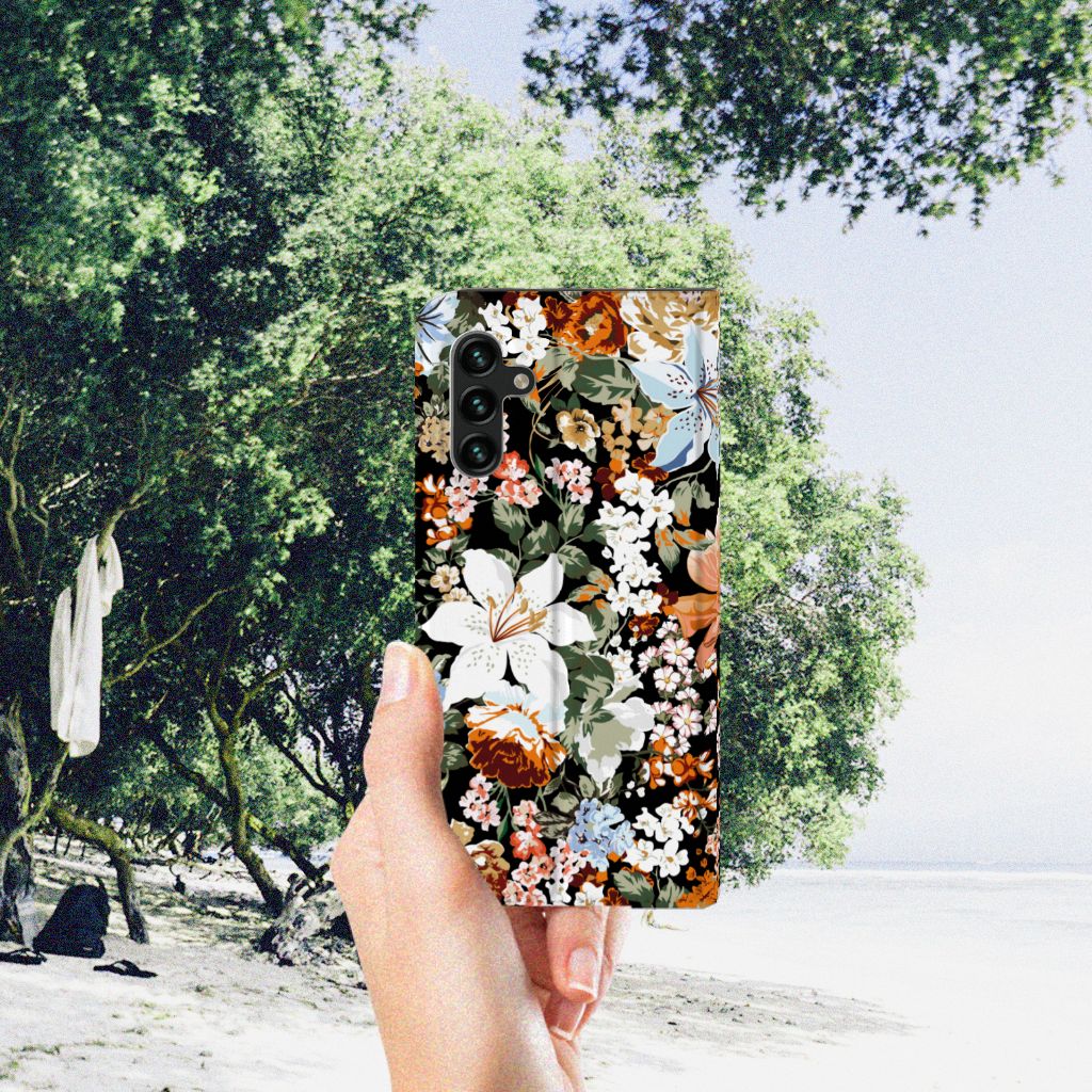 Ben jij ook zo gek op bloemen? Wij in ieder geval wel! Dit hoesje met verschillende soorten bloemen voor je Samsung Galaxy A13 (5G) | Samsung Galaxy A04s maken jouw dag helemaal goed. Je hoeft ze nooit water te geven en ze staan er altijd prachtig bij ;-). Dit Dark Flowers design wordt geprint op een Smart Cover waarin je een pasje kwijt kunt. Vouw het hoesje om en zet het horizontaal neer voor als je graag filmpjes op je Samsung Galaxy A13 (5G) | Samsung Galaxy A04s kijkt. De magneten aan de binnenkant zorgen ervoor dat het hoesje dicht blijft in bijv. je tas. Bescherm je smartphone vandaag nog met dit Dark Flowers design hoesje!
