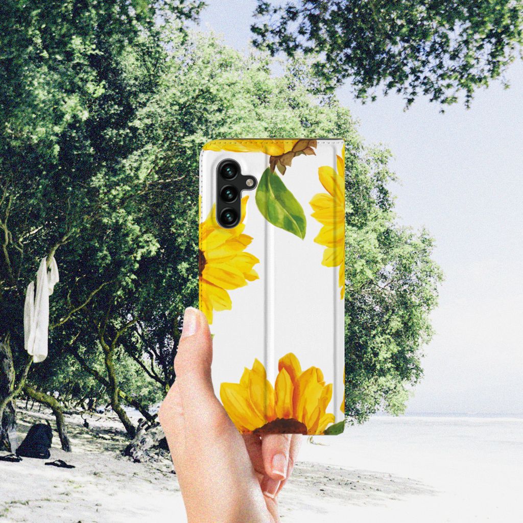 Een zonnebloem is niet alleen mooi, maar ook nog eens slim. Wist je dat de bloem draait naar de kant waar de zon schijnt? Daarom staat de zonnebloem voor veel mensen symbool voor de zomer. Wat ons betreft schijnt de zon altijd met dit mooie zonnebloemen hoesje voor jouw Samsung Galaxy A13 (5G) | Samsung Galaxy A04s. Dit zonnige zonnebloemen design wordt geprint op een Smart Cover waarin je een pasje kwijt kunt. Vouw het hoesje om en zet het horizontaal neer voor als je graag filmpjes op je Samsung Galaxy A13 (5G) | Samsung Galaxy A04s kijkt. De magneten aan de binnenkant zorgen ervoor dat het hoesje dicht blijft in bijv. je tas. Bestel vandaag nog dit Zonnebloemen design hoesje voor je smartphone.