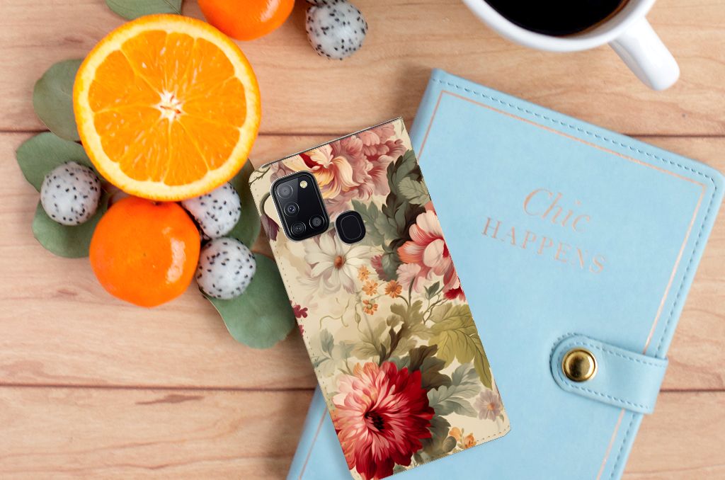 Wij (vrouwen) krijgen geen genoeg van chocolade, schoenen en bloemen. Daarom mag dit prachtige bloemen hoesje zeker niet ontbreken in onze collectie design hoesjes. Wij krijgen hier romantische vibes van, jij ook? Dit design wordt geprint op een Smart Cover speciaal op maat gemaakt voor de Samsung Galaxy A21s. In dit hoesje kun je een pasje kwijt, super fijn toch? Vouw het hoesje om en zet het horizontaal neer voor als je graag filmpjes op je Samsung Galaxy A21s kijkt. De magneten aan de binnenkant zorgen ervoor dat het hoesje dicht blijft in bijv. je tas. Bescherm jouw smartphone vandaag nog met dit romantische bloemen hoesje!