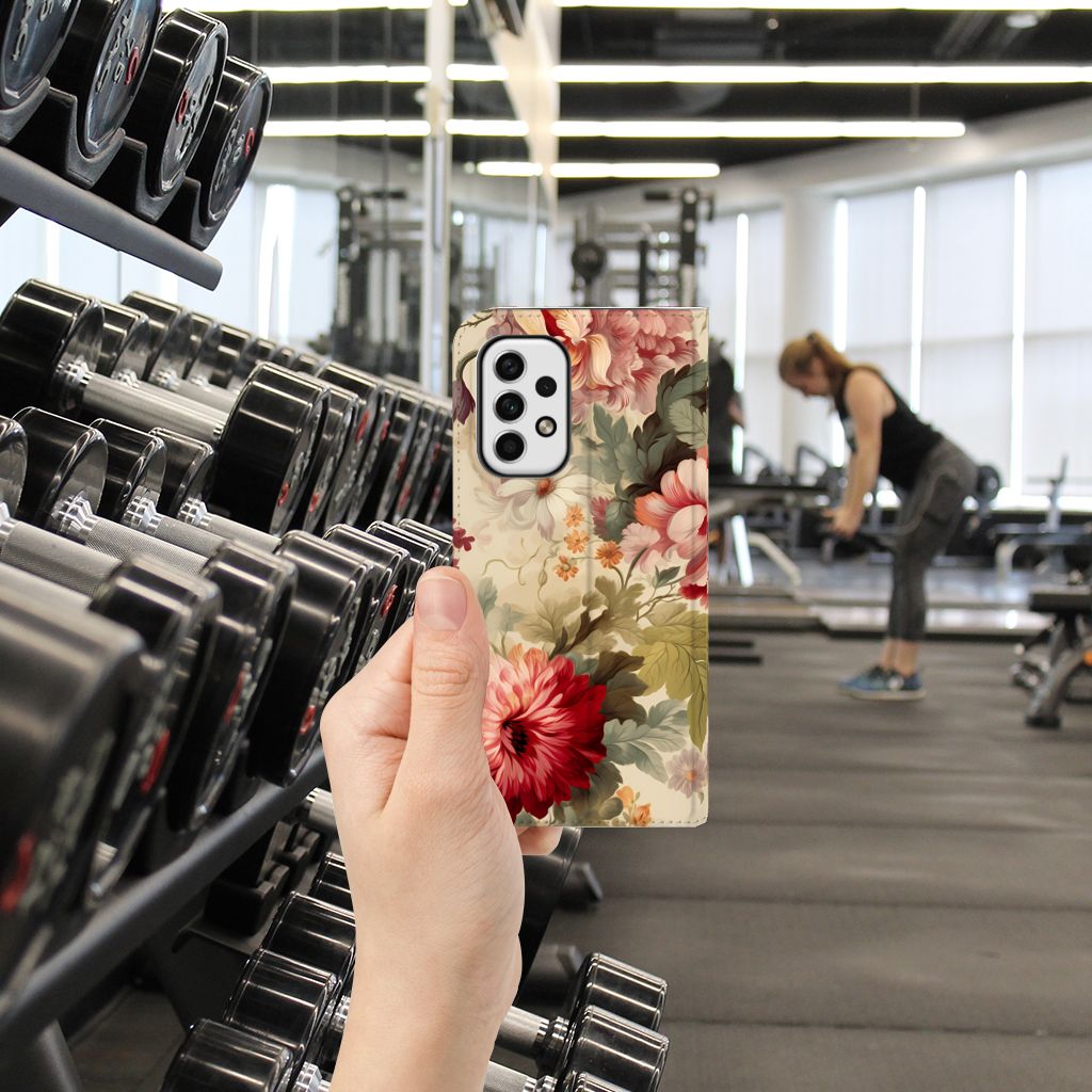 Wij (vrouwen) krijgen geen genoeg van chocolade, schoenen en bloemen. Daarom mag dit prachtige bloemen hoesje zeker niet ontbreken in onze collectie design hoesjes. Wij krijgen hier romantische vibes van, jij ook? Dit design wordt geprint op een Smart Cover speciaal op maat gemaakt voor de Samsung Galaxy A23. In dit hoesje kun je een pasje kwijt, super fijn toch? Vouw het hoesje om en zet het horizontaal neer voor als je graag filmpjes op je Samsung Galaxy A23 kijkt. De magneten aan de binnenkant zorgen ervoor dat het hoesje dicht blijft in bijv. je tas. Bescherm jouw smartphone vandaag nog met dit romantische bloemen hoesje!
