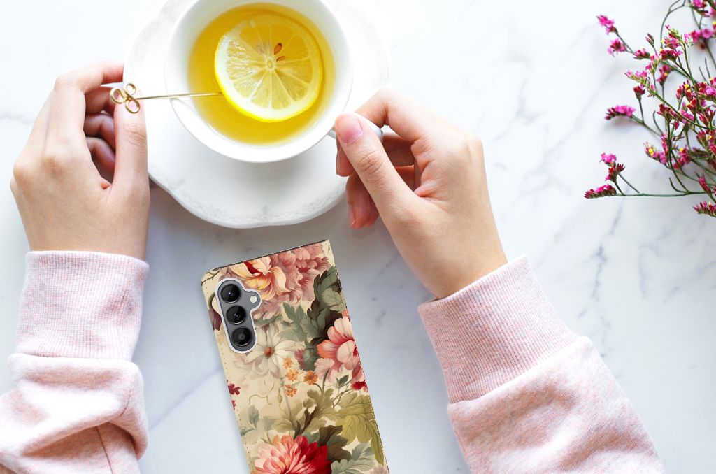 Wij (vrouwen) krijgen geen genoeg van chocolade, schoenen en bloemen. Daarom mag dit prachtige bloemen hoesje zeker niet ontbreken in onze collectie design hoesjes. Wij krijgen hier romantische vibes van, jij ook? Dit design wordt geprint op een Smart Cover speciaal op maat gemaakt voor de Samsung Galaxy A34. In dit hoesje kun je een pasje kwijt, super fijn toch? Vouw het hoesje om en zet het horizontaal neer voor als je graag filmpjes op je Samsung Galaxy A34 kijkt. De magneten aan de binnenkant zorgen ervoor dat het hoesje dicht blijft in bijv. je tas. Bescherm jouw smartphone vandaag nog met dit romantische bloemen hoesje!