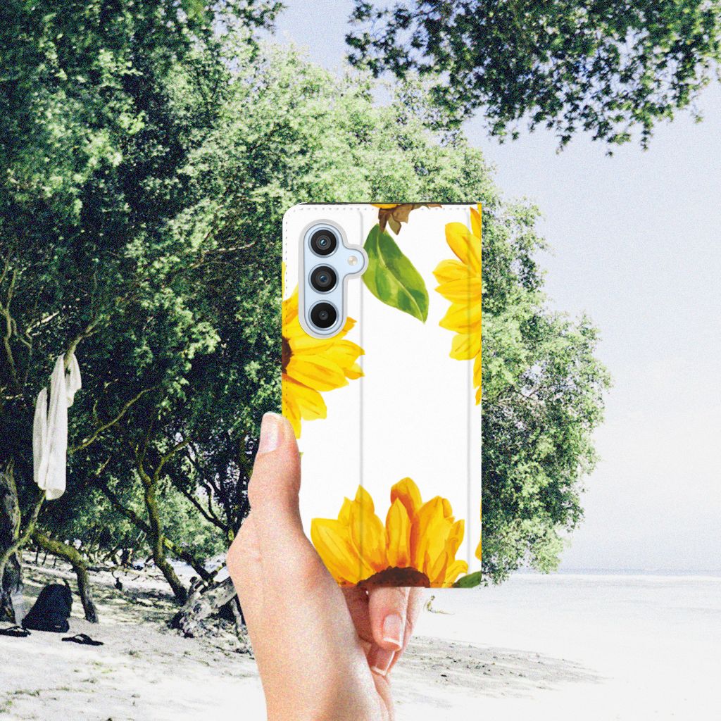 Een zonnebloem is niet alleen mooi, maar ook nog eens slim. Wist je dat de bloem draait naar de kant waar de zon schijnt? Daarom staat de zonnebloem voor veel mensen symbool voor de zomer. Wat ons betreft schijnt de zon altijd met dit mooie zonnebloemen hoesje voor jouw Samsung Galaxy A54. Dit zonnige zonnebloemen design wordt geprint op een Smart Cover waarin je een pasje kwijt kunt. Vouw het hoesje om en zet het horizontaal neer voor als je graag filmpjes op je Samsung Galaxy A54 kijkt. De magneten aan de binnenkant zorgen ervoor dat het hoesje dicht blijft in bijv. je tas. Bestel vandaag nog dit Zonnebloemen design hoesje voor je smartphone.