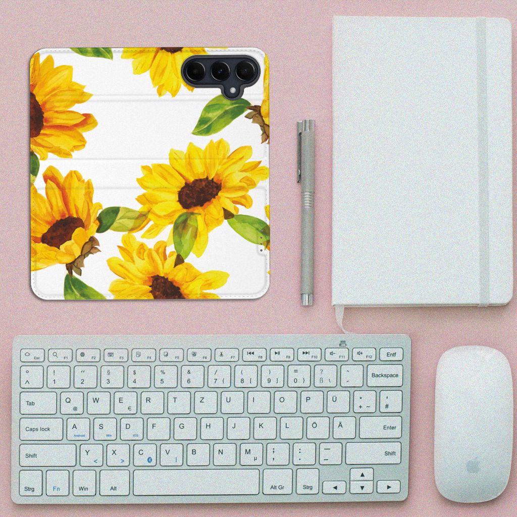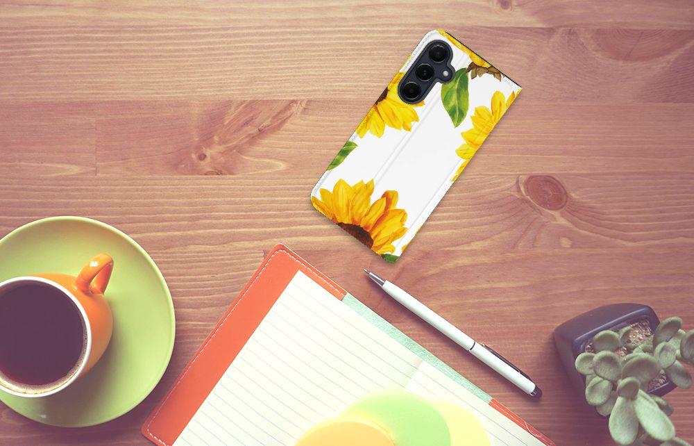 Een zonnebloem is niet alleen mooi, maar ook nog eens slim. Wist je dat de bloem draait naar de kant waar de zon schijnt? Daarom staat de zonnebloem voor veel mensen symbool voor de zomer. Wat ons betreft schijnt de zon altijd met dit mooie zonnebloemen hoesje voor jouw Samsung Galaxy A55. Dit zonnige zonnebloemen design wordt geprint op een Smart Cover waarin je een pasje kwijt kunt. Vouw het hoesje om en zet het horizontaal neer voor als je graag filmpjes op je Samsung Galaxy A55 kijkt. De magneten aan de binnenkant zorgen ervoor dat het hoesje dicht blijft in bijv. je tas. Bestel vandaag nog dit Zonnebloemen design hoesje voor je smartphone.