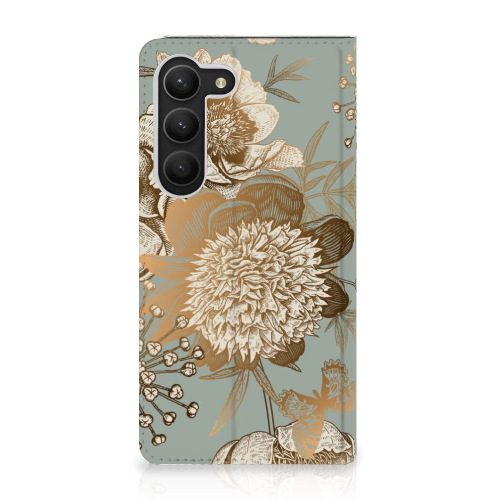 Samsung Galaxy S23 Telefoonhoesje met Pasjes Pauw met Bloemen