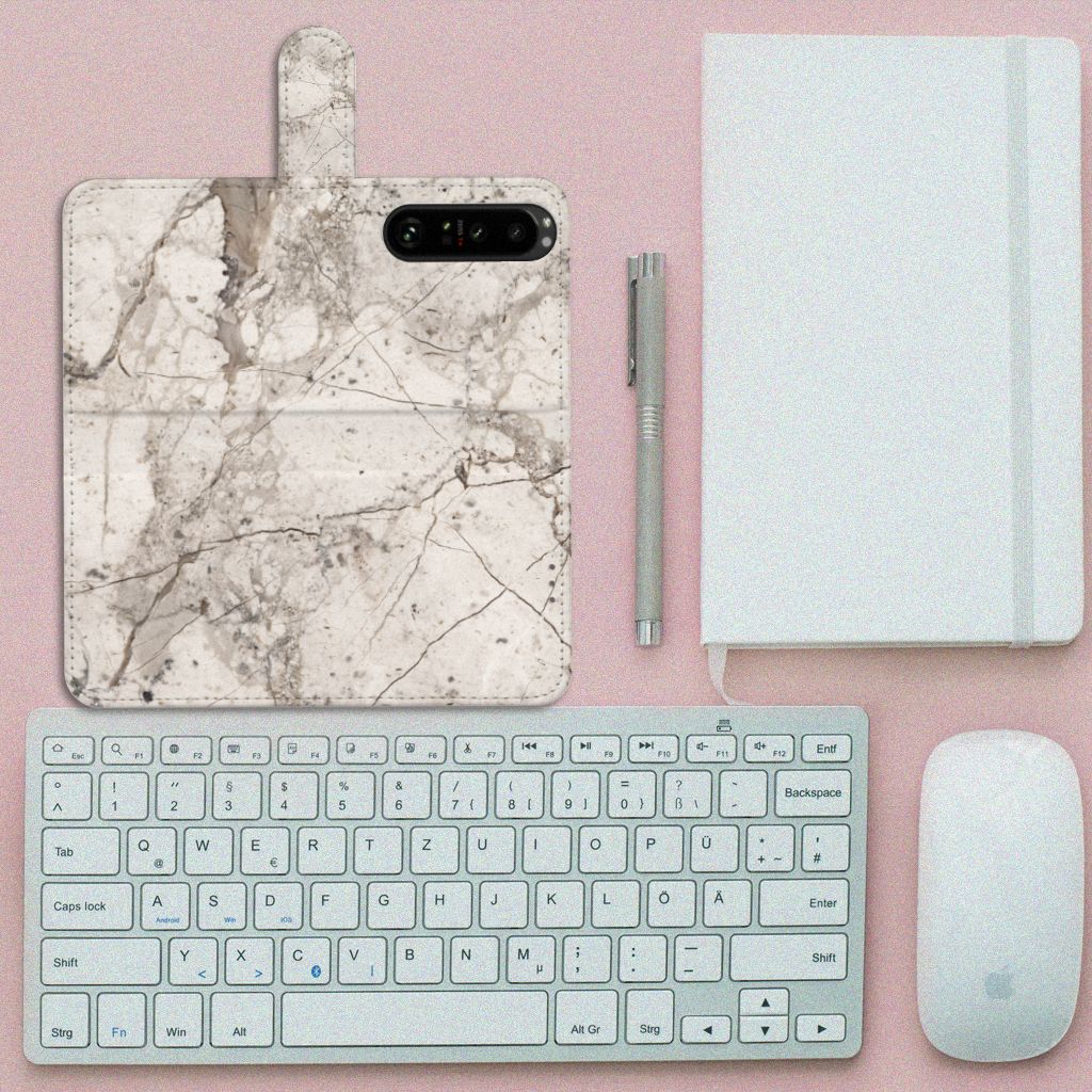Sony Xperia 1 III Bookcase met pasjes Marmer Beige