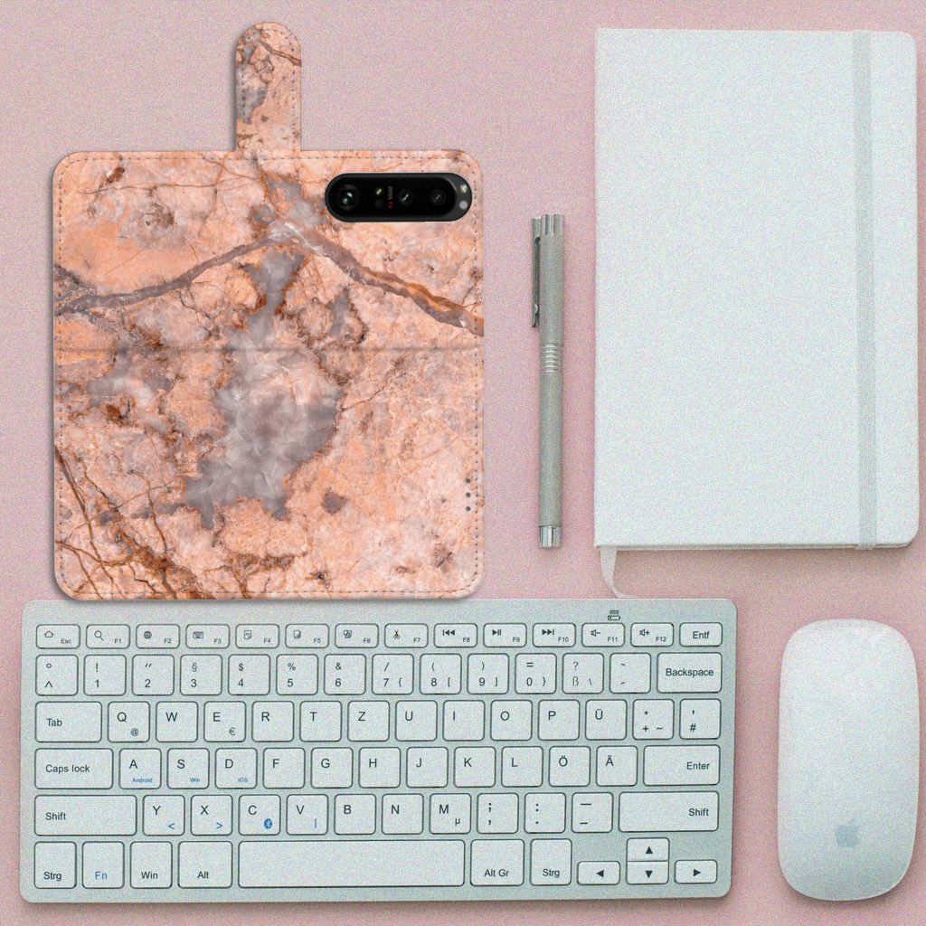 Sony Xperia 1 III Bookcase met pasjes Marmer Oranje