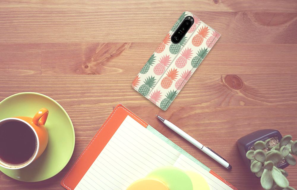 Ananas is een woord uit het Tupi, de taal van de Tupi-indianen, en betekent uitmuntende vrucht. Dit fruit van zeer hoge kwaliteit staat op onze superieure boekhoesjes, stand cases, hard cases en TPU cases. Jij blijft er gezond uitzien als je zo nu en dan een hap neemt van een Ananas , jouw smartphone blijft tip top in orde als je er een leuk telefoonhoesje omheen doet. Een ananas heeft stevig, veerkrachtig vruchtvlees. Een beetje te vergelijken met het TPU in onze hoesjes. TPU is elastisch materiaal, dat zeer buigzaam is. Vandaar dat het zeer schokbestendig is. Het ananas design staat op een stand case. Deze Sony Xperia 1 III Flip Style Cover beschermt jouw telefoon aan alle kanten en beschikt over een 1 opbergvakje en een speciale standaard. Het hoesje wordt afgesloten met een magneet aan de binnenzijde. De houder aan de binnenzijde is van TPU.