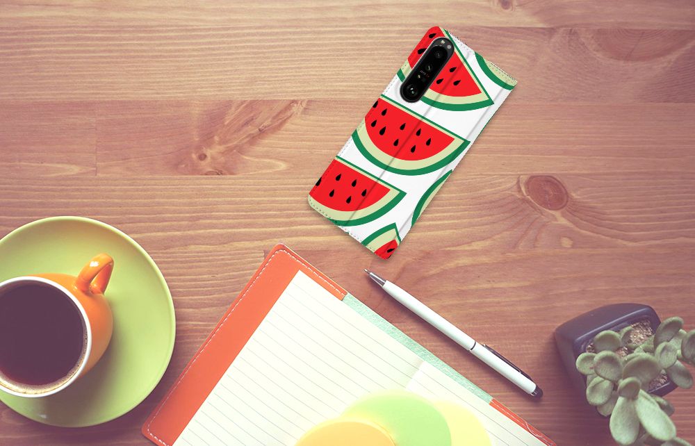Watermeloenen zijn uitstekende dorstlessers, misschien dat je daarom juist in de zomermaanden extra enthousiast raakt van dit design hoesje Watermelons. Jij blijft gezond als je zo nu en dan een watermeloen neemt, jouw smartphone blijft in tact als je er deze Sony Xperia 1 III Flip Style Cover omheen doet. De stand case beschermt jouw telefoon aan alle kanten en beschikt over een 1 opbergvakje en een speciale standaard. Het hoesje wordt afgesloten met een magneet aan de binnenzijde. De houder aan de binnenzijde is van TPU. Je kunt ook kiezen voor andere soorten fruit op je hoesje. Kijk maar eens naar onze andere design hoesjes op onze website.