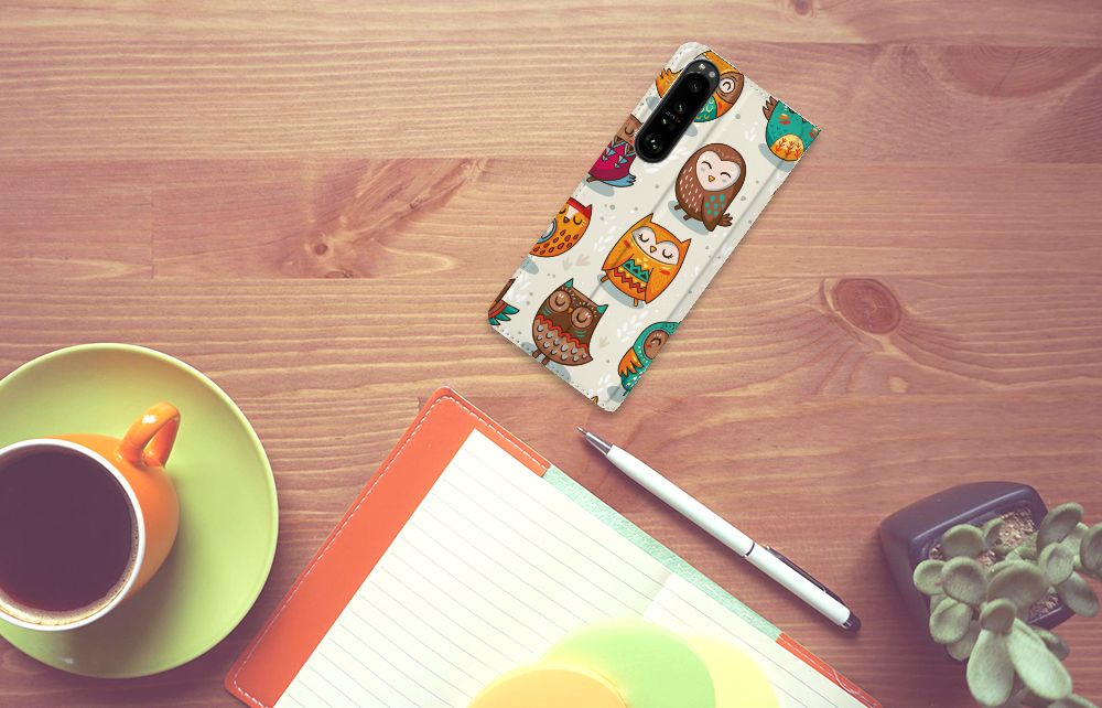 Deze Sony Xperia 1 III Hoesje maken met Vrolijke Uilen is echt iets voor de nachtbrakers onder ons. De uil is zoals je weet bij uitstek een vogel die in de nachtelijke uren actief is. Ben jij ook iemand die s ’nachts tot leven komt, dan is deze stand case met uilen in felle kleuren echt iets voor jou. Als je tot in de late uurtjes op stap bent, komt het goed uit dat jouw smartphone aan alle kanten goed is beschermd met deze stand case met uilen. De case met uilen heeft een magnetische sluiting aan de binnenkant, waardoor de hoes niet openklapt als die uit je handen valt. Jouw creditcard of pinpas heb je als het goed is veilig opgeborgen in het vakje aan de binnenzijde. De houder aan de binnenzijde van de case met print van uilen is van het flexibele TPU. De wat ruigere types hebben veel baat bij deze stand case met uilen in felle kleuren.