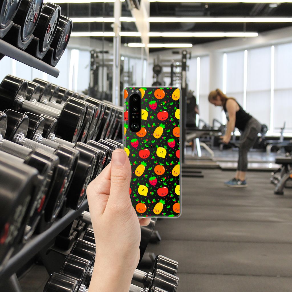 Een fris, fruitig en vrolijk hoesje, deze case met afbeeldingen van aardbeien, ananassen, appels, sinaasappels en citroenen. Minstens twee stuks fruit per dag wordt aanbevolen als dagelijkse hoeveelheid voor de mens. Dit verkleint de kans op allerlei ziekten. Dus met het aantal stukken fruit op de Sony Xperia 1 III Siliconen Case zou je wel een maandje zoet moeten zijn. Met het hoesje zelf kun je je hele leven doen, dit is namelijk niet stuk te krijgen. Dit komt door het sterke en flexibele materiaal waarvan het gemaakt is. De vrolijk stemmende case het desing Fruits maakt jouw telefoon dus zeer duurzaam. Zorg ervoor dat jouw smartphone gezond blijft en kies voor dit hoesje met frivool fruit. Een tpu case met fruit wordt alleen aan de bovenkant bedrukt en is zeer flexibel. De randen van het hoesje blijven transparant en worden niet bedrukt met het fruit.
