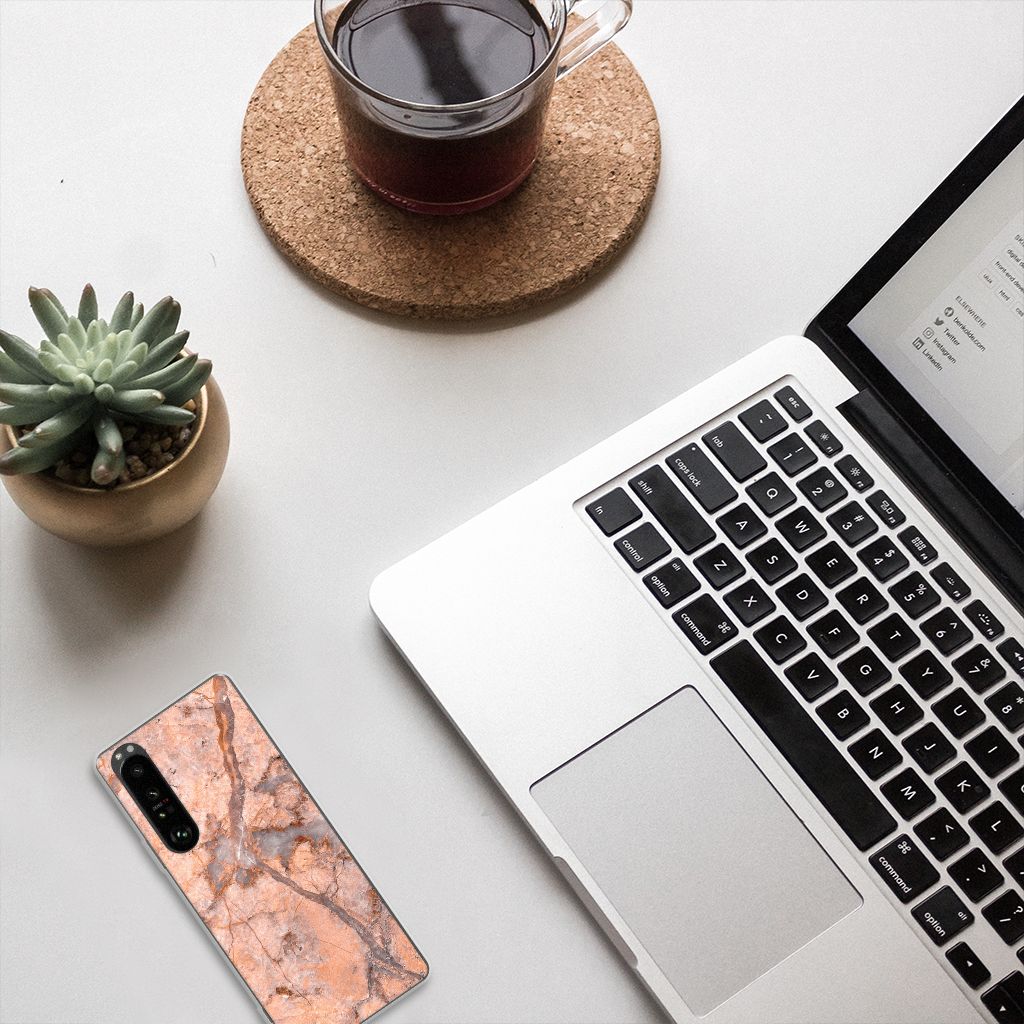 Dit design hoesje met Marmer Oranje is zeer geschikt voor jouw kostbare telefoon. Vanwege zijn prachtige lichtval en vastheid is marmer een zeer gewild bouwmateriaal. Wij kunnen inmiddels concluderen dat dit hoesje met oranje marmer ook zeer gewild is. Beloon jezelf en je telefoon met dit hele mooie Sony Xperia 1 III TPU Siliconen Hoesje. Naast het oranje marmer zijn er de diverse marmersoorten in een ruim kleurenpallet te krijgen. Deze tpu case met marmer in oranje wordt aan de achterzijde bedrukt. De case beschikt over opstaande randen en is gemaakt van onbreekbaar materiaal. De randen van de case in oranje marmer blijven transparant. Wij hebben onze designer veel vrijheid gegeven met het ontwerpen dit mooie hoesje. Het resultaat zie je terug in deze tpu case met oranje marmer, dat een hele goede bescherming is voor jouw smartphone. Des te mooi dat wij voor variatie hebben gekozen door een hoesje met oranje marmer aan de bieden.