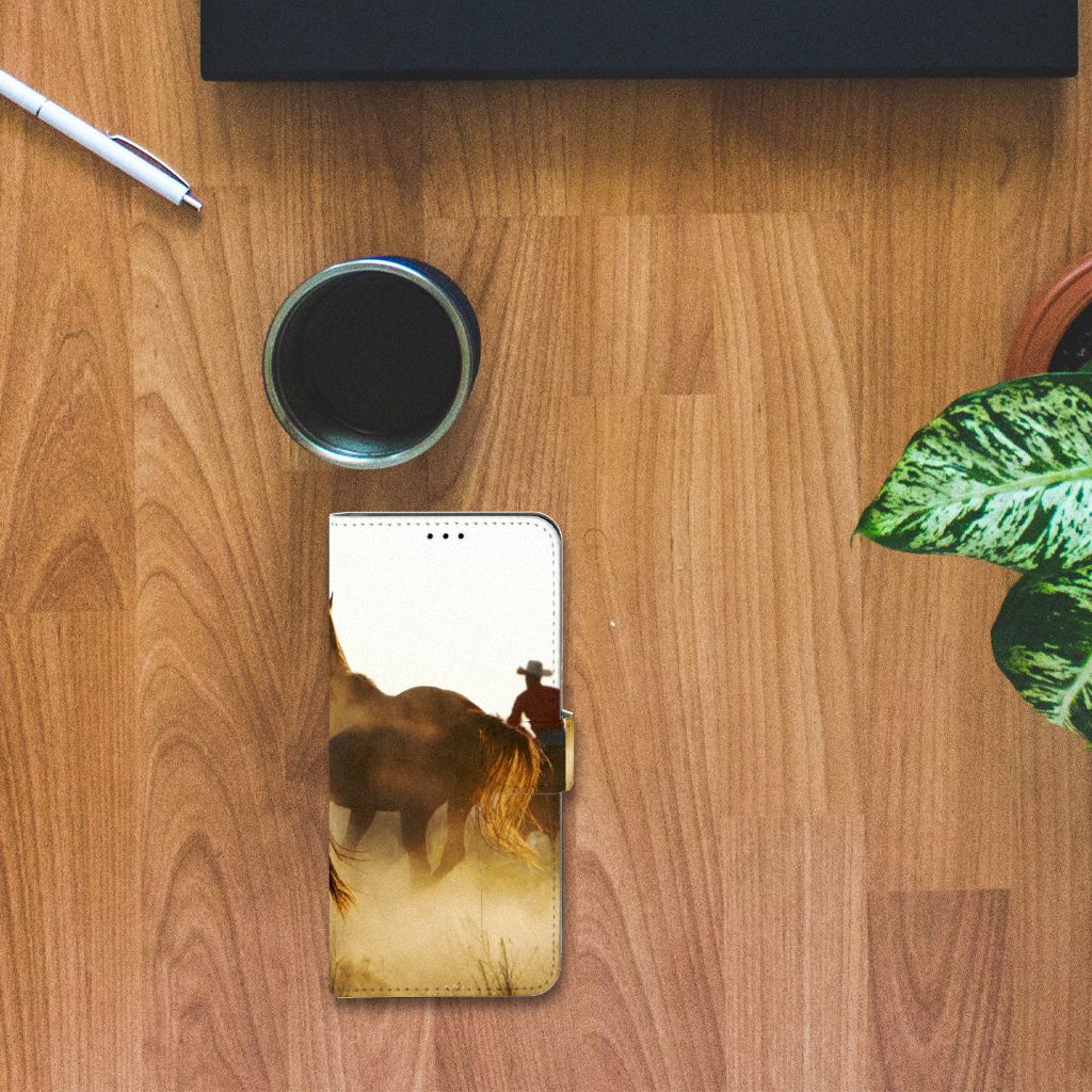 Voor de paardenliefhebbers onder ons hebben we onze collectie uitgebreid met dit design hoesje met print van een cowboy met paarden. Vroeger hield de mens vooral werkpaarden, inmiddels hebben we vriendschap gesloten met het paard. Vandaar dat het ook een favoriet dier is op onze smartphonehoesjes, zoals deze boekhoesjes. Dit Telefoonhoesje met Pasjes met paarden is niet alleen super mooi en chique, het sluit ook nog perfect dankzij het lipje aan de buitenzijde. Verder heeft de case een TPU houder aan de binnenzijde en houders voor pasjes en briefgeld. Zie je liever je eigen paard terug op een hoesje voor jouw Sony Xperia 1 IV? Dat kan! Door zelf een uniek hoesje te ontwerpen, met eigen foto’s en teksten. Het boekhoesje met paarden wordt aan alle zijden bedrukt.