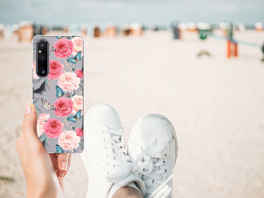 Ben je op zoek naar een uniek telefoonhoesje voor je Sony Xperia 1 V? Dan ben je bij B2C Telecom aan het juiste adres! Speciaal voor jou hebben we dit prachtige Butterfly Roses design in onze collectie hoesjes opgenomen. Het design wordt bedrukt op een TPU Case en is gemaakt van flexibel rubber. Het design wordt alleen aan de bovenkant van het hoesje bedrukt en de randen blijven transparant. Aan de zijkanten zijn uitsparingen gemaakt waardoor je met gemak alle knoppen en poorten kunt bedienen. Wij adviseren om dit hoesje in combinatie met een screenprotector te gebruiken voor een langere levensduur van je telefoon. Wil je dit design hoesje nog iets extra's geven? Voeg dan gratis je naam of een quote toe! Is dit design hoesje toch niet helemaal wat je zocht? Ontwerp dan zelf een hoesje in ons ontwerpprogramma.