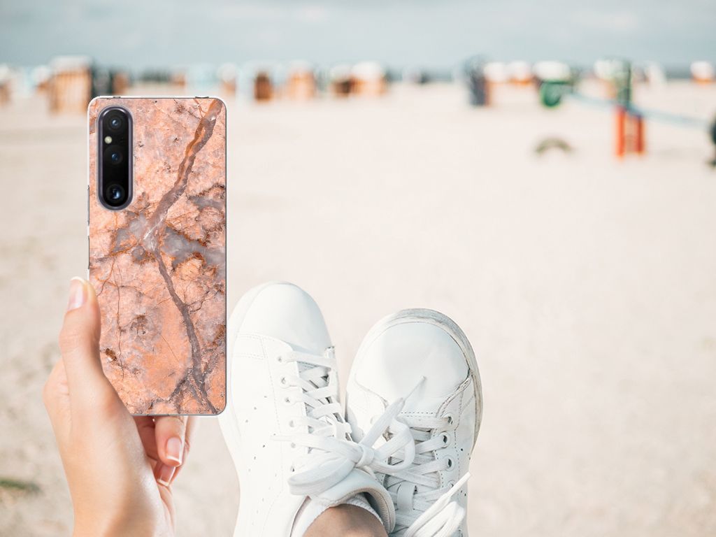 Dit design hoesje met Marmer Oranje is zeer geschikt voor jouw kostbare telefoon. Vanwege zijn prachtige lichtval en vastheid is marmer een zeer gewild bouwmateriaal. Wij kunnen inmiddels concluderen dat dit hoesje met oranje marmer ook zeer gewild is. Beloon jezelf en je telefoon met dit hele mooie Sony Xperia 1 V TPU Siliconen Hoesje. Naast het oranje marmer zijn er de diverse marmersoorten in een ruim kleurenpallet te krijgen. Deze tpu case met marmer in oranje wordt aan de achterzijde bedrukt. De case beschikt over opstaande randen en is gemaakt van onbreekbaar materiaal. De randen van de case in oranje marmer blijven transparant. Wij hebben onze designer veel vrijheid gegeven met het ontwerpen dit mooie hoesje. Het resultaat zie je terug in deze tpu case met oranje marmer, dat een hele goede bescherming is voor jouw smartphone. Des te mooi dat wij voor variatie hebben gekozen door een hoesje met oranje marmer aan de bieden.