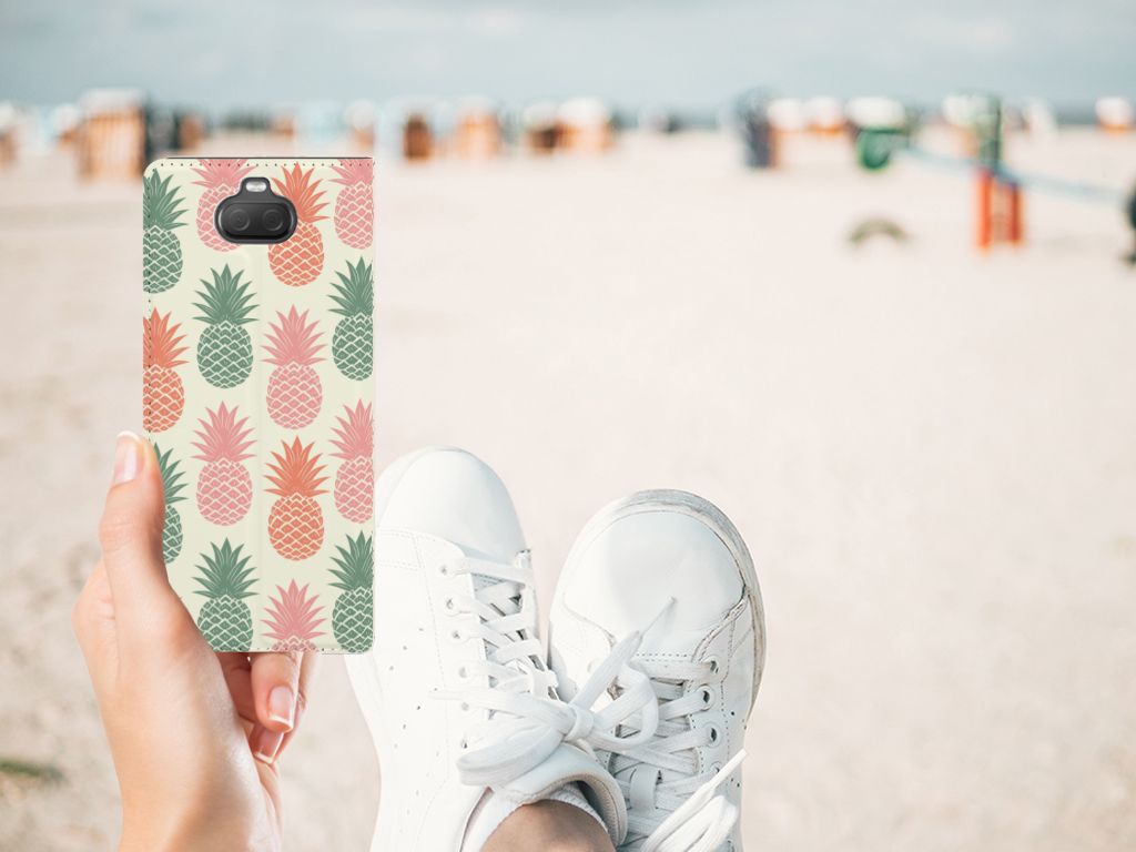 Ananas is een woord uit het Tupi, de taal van de Tupi-indianen, en betekent uitmuntende vrucht. Dit fruit van zeer hoge kwaliteit staat op onze superieure boekhoesjes, stand cases, hard cases en TPU cases. Jij blijft er gezond uitzien als je zo nu en dan een hap neemt van een Ananas , jouw smartphone blijft tip top in orde als je er een leuk telefoonhoesje omheen doet. Een ananas heeft stevig, veerkrachtig vruchtvlees. Een beetje te vergelijken met het TPU in onze hoesjes. TPU is elastisch materiaal, dat zeer buigzaam is. Vandaar dat het zeer schokbestendig is. Het ananas design staat op een stand case. Deze Sony Xperia 10 Flip Style Cover beschermt jouw telefoon aan alle kanten en beschikt over een 1 opbergvakje en een speciale standaard. Het hoesje wordt afgesloten met een magneet aan de binnenzijde. De houder aan de binnenzijde is van TPU.