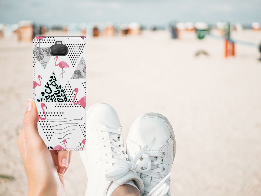 Een Sony Xperia 10 Hoesje maken met Flamingo Triangle is in vele opzichten bijzonder. De rode flamingo op het hoesje komt oorspronkelijk uit het Caraïbische gebied. Stel dat je in deze regio vakantie viert, dan val je zonder meer op met dit hoesje met flamingo’s en driehoeken. Deze stand case biedt bescherming voor alle zijden van je telefoon. Jouw smartphone ligt goed opgeborgen in de TPU houder aan de binnenzijde en in dit gedeelte van het hoesje met flamingo’s en driehoeken zit de magnetische sluiting. Ook de palmbomen op deze stand case bieden het ultieme vakantiegevoel. De stand case met flamingo’s en driehoeken heeft vakjes voor pasjes en is op maat gemaakt.