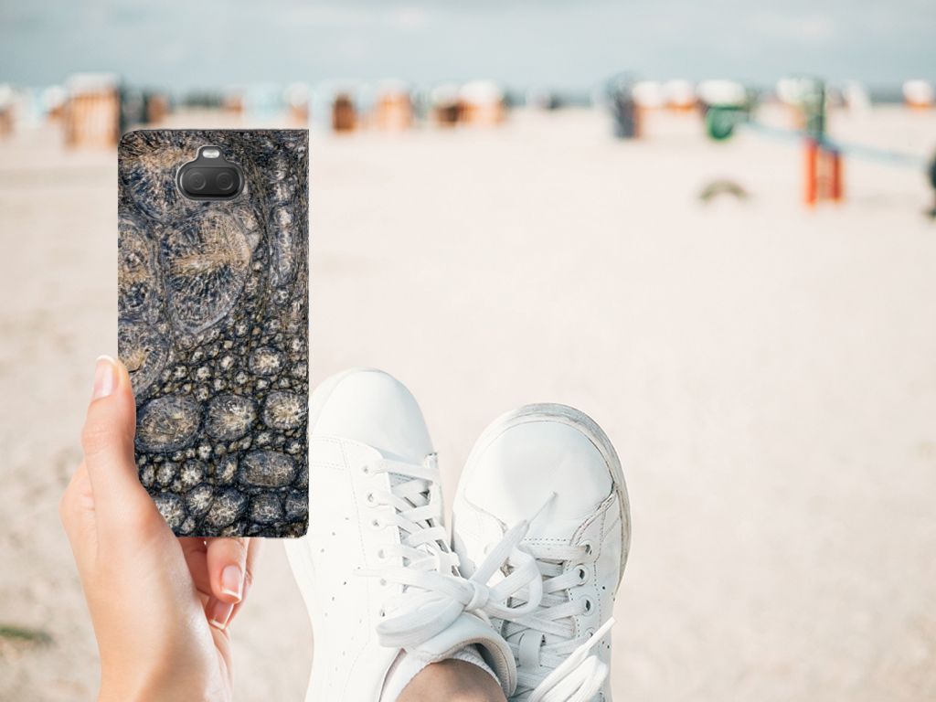 De dikke huid van een krokodil is zeer gevoelig. Met deze Sony Xperia 10 Hoesje maken met Krokodillenprint hoef je je geen zorgen te maken dat je smartphone schade oploopt. De krokodillenprint zetten we op een stand case op het moment dat jij je bestelling plaatst. Hierdoor krijgt jouw telefoon een print van krokodillen van zeer hoge kwaliteit. We bedrukken jouw gehele stand case met de vlekken van de krokodil. Je bankpas of creditcard kun je stoppen in het vakje aan de binnenkant van het telefoonhoesje met krokodillenprint. Met hun zintuigen kunnen krokodillen hitte, kou, aanraking, waterstroming en chemische stoffen detecteren. Jouw stand hoesje met krokodillenprint beschermt perfect tegen invloeden van buitenaf.