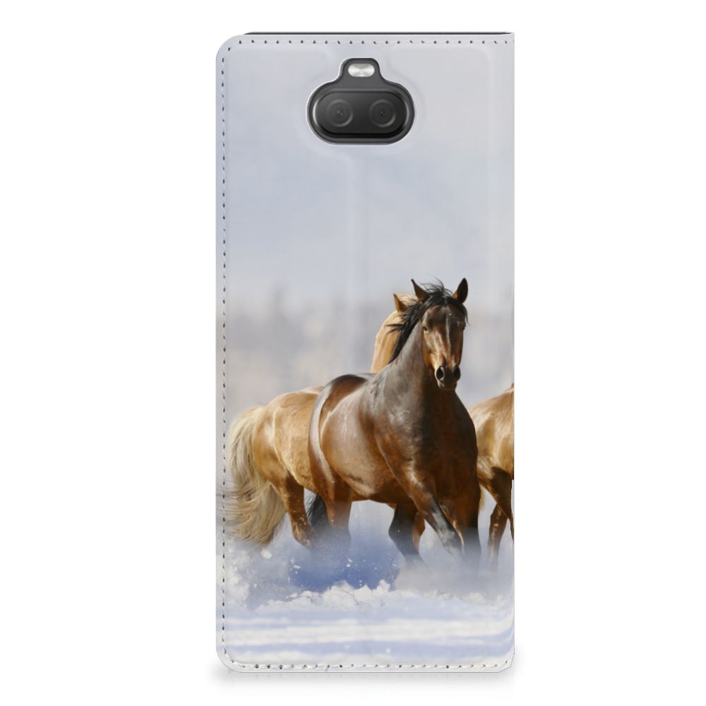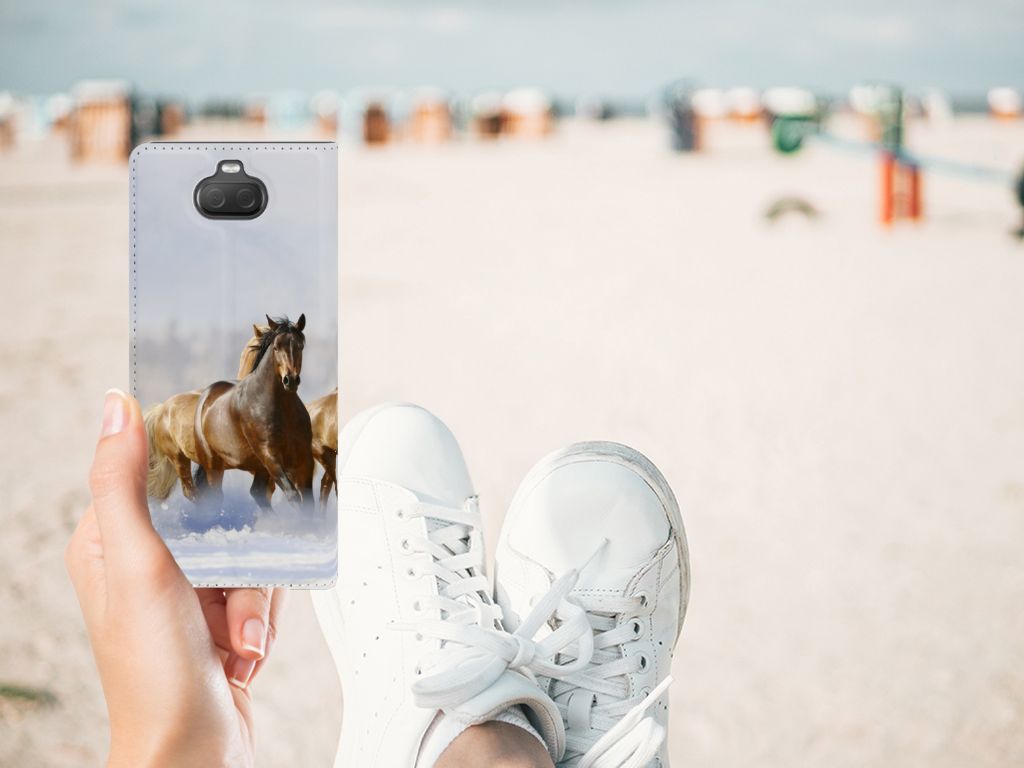 Voor de paardenliefhebbers onder ons hebben we onze collectie uitgebreid met dit design hoesje met print van paarden. Vroeger hield de mens vooral werkpaarden, inmiddels hebben we vriendschap gesloten met het paard. Vandaar dat het ook een favoriet dier is op onze smartphonehoesjes, zoals deze stand cases. Deze Sony Xperia 10 Hoesje maken met Paarden is niet alleen super mooi en chique, het sluit ook nog perfect dankzij de magneet aan de binnenzijde. Verder heeft de case een TPU houder aan de binnenzijde en een houder voor een pasje. Zie je liever je eigen paard terug op een hoesje? Dat kan! Door zelf een uniek hoesje te ontwerpen, met eigen foto’s en teksten. De stand case met paarden wordt aan alle zijden bedrukt.