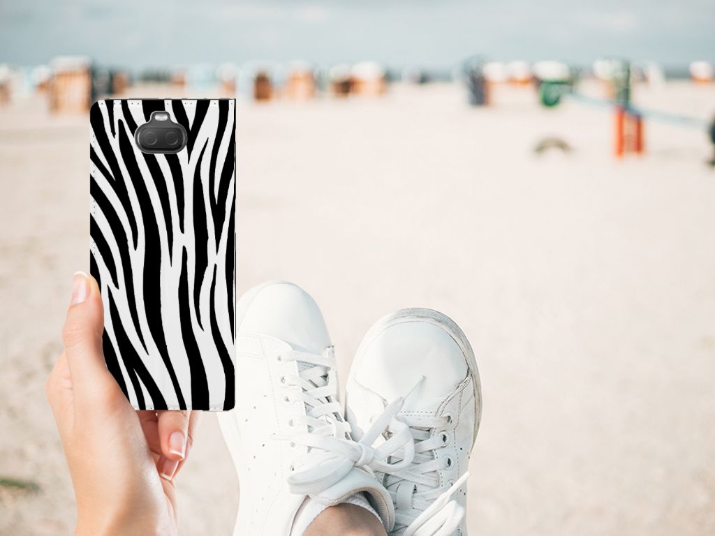 Deze Sony Xperia 10 Hoesje maken met zwart en witte zebra strepen kan exclusief in het bezit van jou komen. Zeker als je er zelf nog unieke teksten en/of beelden aan toevoegt van jezelf. Je hoesje krijgt dan een eigen identiteit, net zoals de witte en zwarte strepen uniek zijn bij iedere Zebra. Deze zijn te vergelijken met de vingerafdrukken bij de mens. De strepen en patronen zijn nooit identiek aan die van een andere zebra. Ben jij toe aan een unieke stand case? Pak dan dit design met zebra strepen als basis. Het stand hoesje is van PU-leer (buitenzijde) en TPU (binnenzijde) en beschikt over een houder voor pasjes en briefgeld. Verder is dit hoesje met zebra print voorzien van magneten aan de binnenzijde. Een zebra gebruikt de strepen ook om zich te camoufleren in de omgeving om zo uit het zicht te blijven van de roofdieren. Jij zorgt voor de perfecte bescherming van je smartphone met dit design hoesje in zebra kleuren.