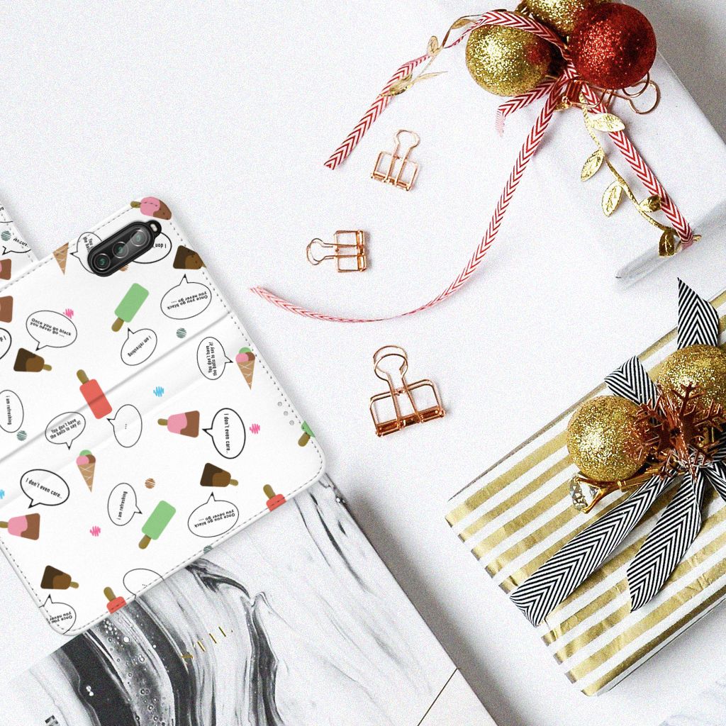Van dit vrolijke Sony Xperia 10 II Book Cover met daarop verschillende soorten ijsjes met tekstwolkjes krijg je sowieso een vrij en zomers gevoel. De zomer komt naar je toe met deze print van ijsjes met tekstwolkjes. Ben je op het strand, dan ontbreekt een lekker ijsje natuurlijk niet. Net zoals je je smartphone bij de hand hebt, met daaromheen een design hoesje met bijzondere ijsjes en tekstwolkjes. Jouw telefoon kan dan de bescherming in de vorm van een boekhoesje met ijsjes zeer goed gebruiken. Alle zijden van dit hoesje worden bedrukt met ijsjes en tekstwolkjes. De case heeft een lipje aan de buitenzijde voor het afsluiten van de telefoon en de houder aan de binnenzijde is van TPU. Onder alle weersomstandigheden zal deze case met verschillende opbergvakjes perfect functioneren, ook op het strand met een ijsje in je hand.