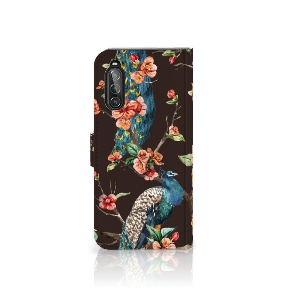 Sony Xperia 10 II Telefoonhoesje sluit met magnetisch lipje Pauw | Bloemen