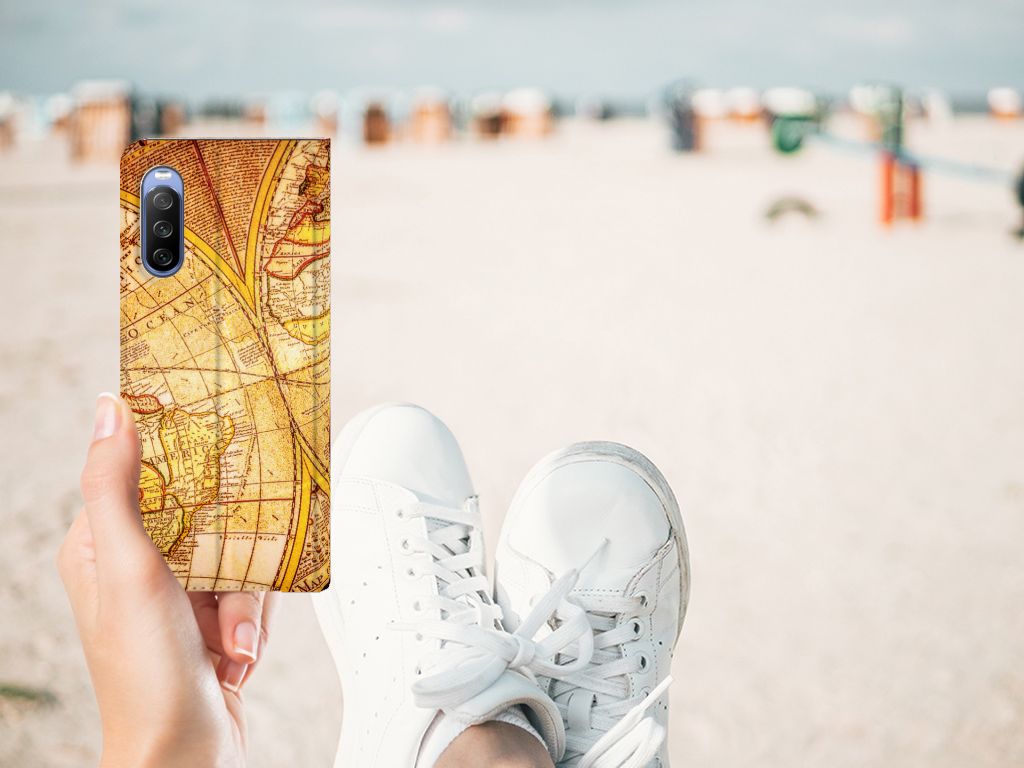 Met deze Sony Xperia 10 III Book Cover met opdruk van een Kompas kun jij veilig elke richting op die je wilt, zonder dat je smartphone schade oploopt. Erg handig. Een kompas werkt overigens met magnetisme. Dat betekent dat een kompas af gaat wijken als die te dicht in de buurt van metaal of een andere magnetische bron komt. Deze stand case met kompas heeft ook een magneet aan de binnenzijde die ervoor zorgt dat de case niet zomaar open kan klappen. Onze stand cases met kompas bieden de allerbeste bescherming en zijn heel praktisch, wat blijkt uit onder meer het vakje aan de binnenkant en de standaard. Het kompas komt ook op alle zijden van de case te staan. Op deze stand case van leer en TPU (houder aan de binnenkant) kun je trouwens ook in no time zelf foto’s en teksten zetten.