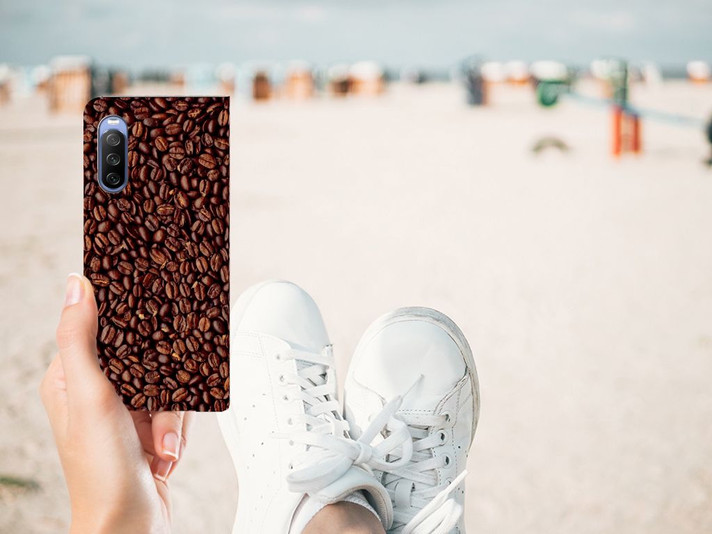 Als je de lekkerste koffie wilt dan kun je beste koffiebonen kopen. Koffie is namelijk het verst wanneer je de bonen zelf maalt. En wie houdt nou niet van de geur van vers gemaalde koffie? Daarom hebben wij de mooiste Koffiebonen op een smartphone hoesje gezet. Ben je barista, dan is dit het perfecte hoesje voor jouw werktelefoon. De koffiebonen staan op een stand case. Er is vrijwel geen betere bescherming dan dit hoesje, dat ook nog eens 1 opbergvakje heeft en een standaard. Je kunt leuk filmpjes kijken met een Sony Xperia 10 III Flip Style Cover. Alle zijden van dit hoesje zijn bedrukt. Mensen die houden van een stevige espresso, kiezen voor dit degelijke design hoesje met bonen. Je kunt zelfs een eigen tekst toevoegen aan het design.