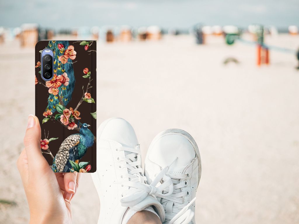 Op deze Sony Xperia 10 III Hoesje maken kun jij zo trots als een pauw zijn. Met dit geweldige design hoesje met een Pauw met Bloemen erop kun jij je smartphone voor zeer lange tijd beschermen. Deze stand case is zeer duurzaam en heeft aan de binnenkant een opbergvakje, waarin je een fitnesspas of pinpas kwijt kunt. Met een stand case met fleurige bloemen en trotse pauwen wordt jouw telefoon er een stuk mooier op. De onderscheidend case heeft een houder van TPU en een magneet aan de binnenkant. Zie jij liever jouw eigen huisdier op een telefoonhoesje? Dan adviseren we je zelf een hoesje te ontwerpen met onze unieke Phone Case Designer. We bedrukken alle zijden van de stand case, met duurzame inkt.