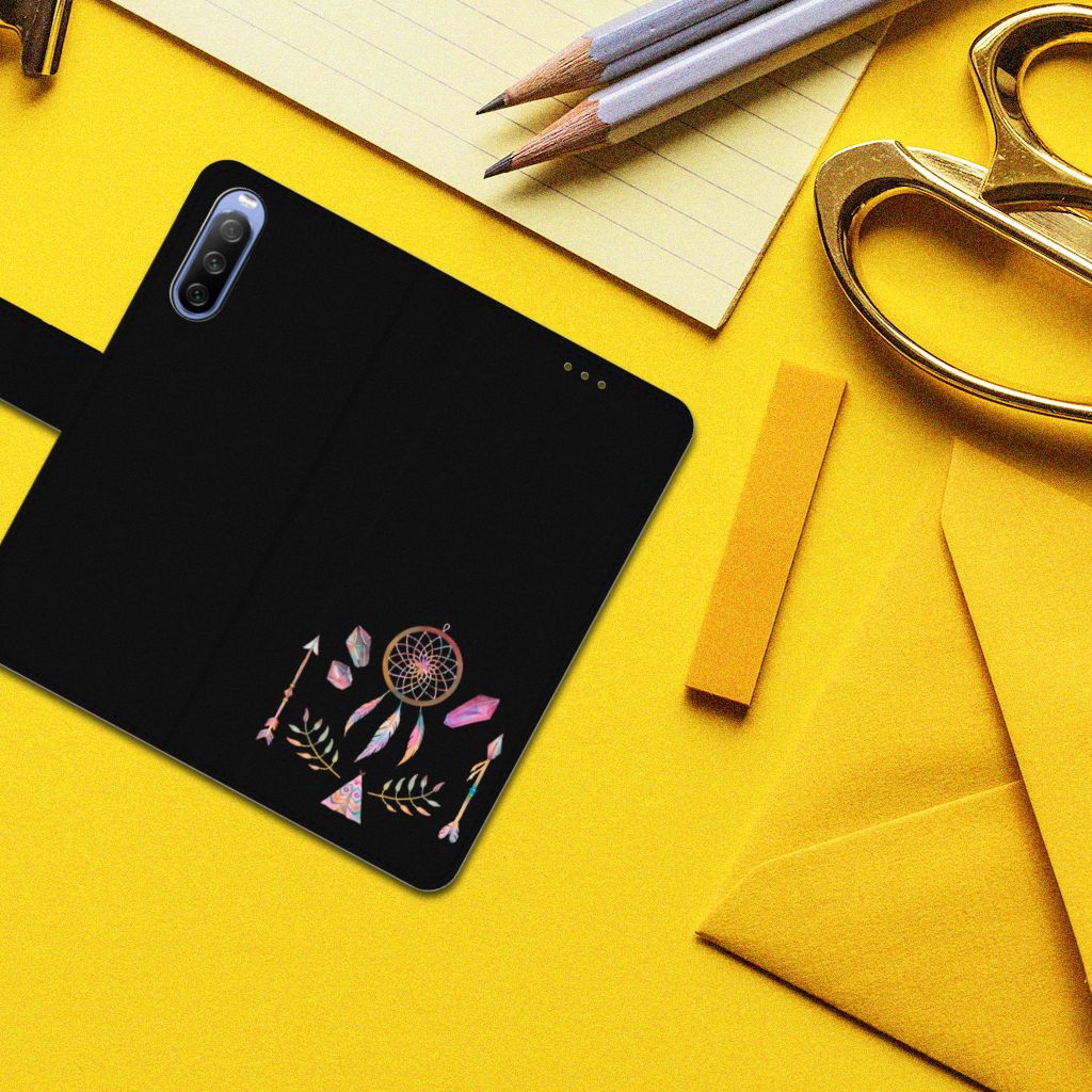 Een dromenvanger werd lang geleden al door een indianenvolk in Noord-Amerika gebruikt om nare dromen te weren. Nu nog hangen mensen over de hele wereld dromenvangers boven hun bed. Maar ook op een telefoonhoesje staat zo’n boho dreamcatcher heel mooi. Dit mooie design dat bestaat uit een tipi, pijlen en dromenvanger heeft veel verschillende prachtige kleuren. Maar omdat het ontwerp minimalistisch en klein is, is het design toch subtiel te noemen. Met dit Leuk Hoesje voor de Sony Xperia 10 III heb je al je belangrijkste bezittingen bij de hand. Binnenin zit namelijk een pasjeshouder voor twee pasjes. Daar bewaar je je belangrijkste (bank)passen in en je briefgeld. En uiteraard is je telefoon ook goed beschermd tegen krassen en beschadigingen.