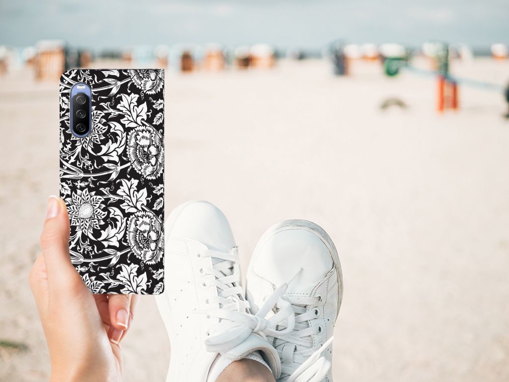 Bloemen raken nooit uit de mode! Een mooie bloemenprint op je telefoonhoesje dus ook niet. Dit ontwerp met mooie, enigszins abstracte bloemen is perfect voor de liefhebber van bloemen die geen felgekleurd hoesje wil. Vanwege de zwarte achtergrond en de witte bloemen heb je toch een opvallend en uniek design in handen. Dit black flowers-ontwerp staat op een Smart Cover voor je Sony Xperia 10 III. Dit populaire smartphonehoesje met het beton-design heeft één vakje voor een pasje of briefgeld en is aan alle zijden bedrukt. Met de standcase zet je je telefoon gemakkelijk neer, zodat je je handen vrij hebt als je bijvoorbeeld een video wilt kijken. De binnenkant van de standcase is van grijs PU-leer. Dat is fijn, omdat je daardoor niet snel vlekken ziet op je hoesje.