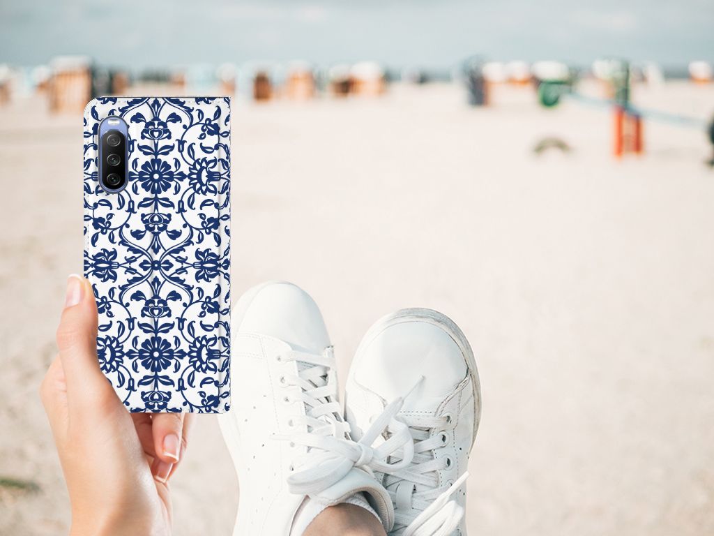 Een plaatje, deze Sony Xperia 10 III Smart Cover met Flower Blue patroon, die jouw telefoon van een hele mooie uitstraling voorziet. We hebben verschillende soorten patronen in de aanbieding waarmee we jouw hoesje kunnen verrijken, maar dit is wel een van de fraaiste. Maar natuurlijk heeft iedereen zo zijn eigen smaak. Vandaar dat we nog allerlei andere patronen kunnen aanbieden in de leukste kleurencombinaties. Het stand hoesje met blauwwit patroon beschermt jouw telefoon aan alle zijden en beschikt over een opbergvakjes voor pasjes en briefgeld. De case sluit perfect af dankzij de magneet aan de binnenzijde. De houder aan de binnenzijde van TPU is zeer flexibel. Alle zijden van de stand case worden bedrukt met het blauwwitte patroon. Heb je een rijke fantasie? Ontwerp dan je eigen design hoesje met favoriet patroon.