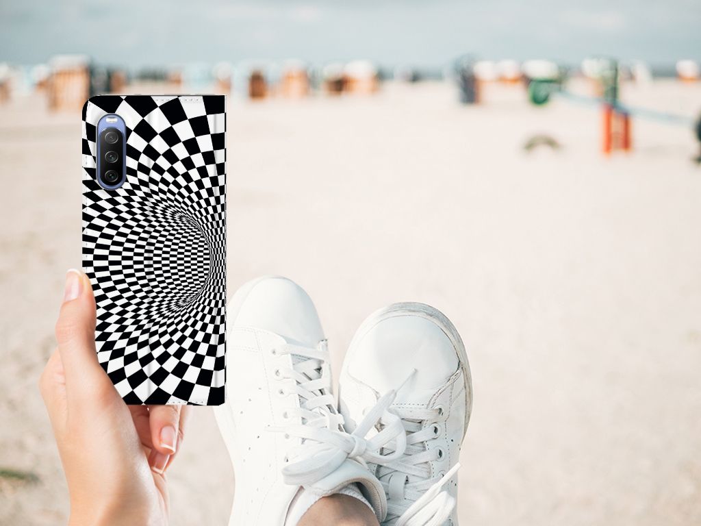 Stand Case Sony Xperia 10 III Design Illusie Zwart & Wit