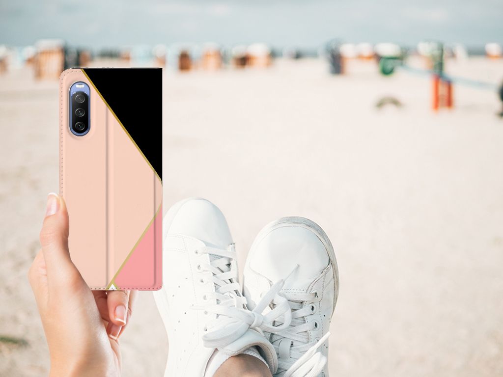 Sony Xperia 10 III Book Case Zwart Roze Vormen