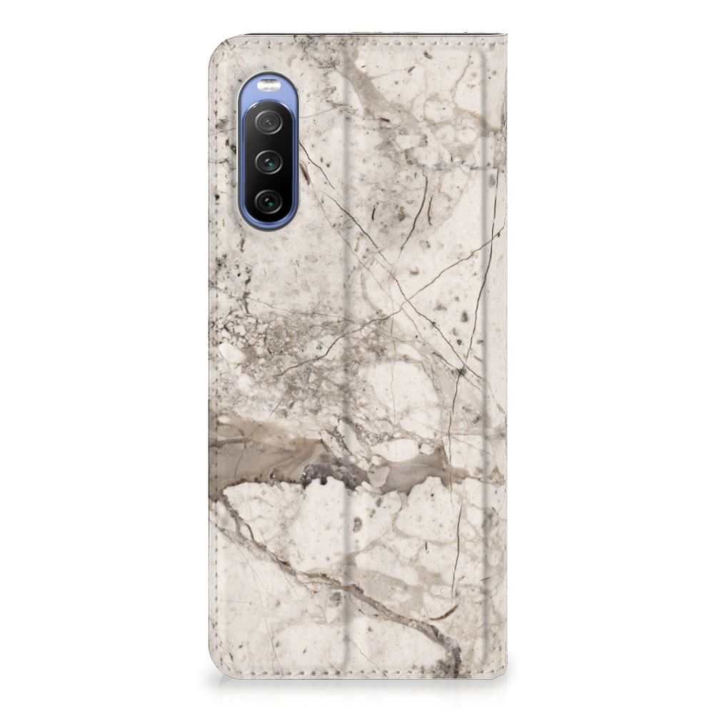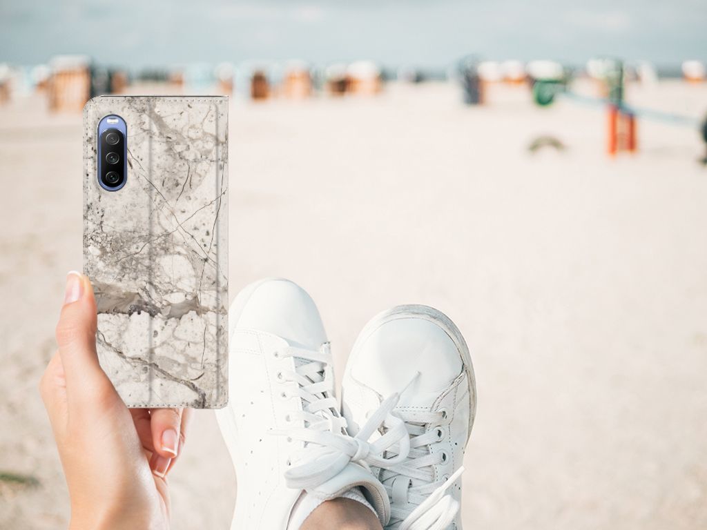 Dit design hoesje met Marmer Beige is voor de artistieke personen onder ons. De Grieken en Romeinen wisten het steen al te waarderen door het als bouw- en bekledingsmateriaal toe te passen. Naast het witte Carrara marmer met haar zacht grijze geaderde belijning zijn de diverse marmersoorten in een ruim kleurenpallet te krijgen. We hebben verschillende kleuren op design hoesjes gezet, zoals in dit geval beige marmer. Dit is een Sony Xperia 10 III Standcase met marmer in beige kleur. Het marmer wordt bedrukt op alle zijden van een stand case, die beschikt over 1 vakje voor een pasje en toebehoren en een magnetische sluiting aan de binnenkant. Verder heeft de case een houder van TPU. De rijkheid aan kleuren en varianties in afwerking geeft designers de vrijheid om met marmer hele mooie architectonische projecten te realiseren. Wij hebben onze designer ook veel vrijheid gegeven. Het resultaat zie je terug in deze stand case met beige marmer, dat de ideale bescherming voor jouw smartphone biedt.