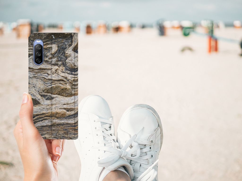 Deze Sony Xperia 10 III Standcase is jouw rots in de branding. Het bruine rotsachtige steen maakt van jouw stand hoesje een echte eyecatcher. Een stand case is van zichzelf al zeer fraai om dit zien, maar met dit design wordt de smartphone pas echt een begerenswaardig apparaat. Het bruine rotsachtige steen wordt bedrukt op alle zijden van de stand case, die beschikt over een vakjes voor pasjes en toebehoren en een magnetische sluiting aan de binnenkant. Verder heeft de case een houder van TPU. Met steen kun je alle kanten op, dat bewijzen we met deze collectie design hoesjes. Onze designer heeft zich overtroffen met dit boekhoesje met structuur van steen.