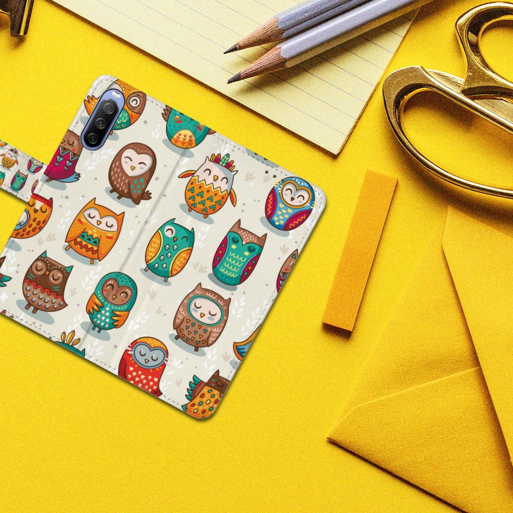 Sony Xperia 10 III Telefoonhoesje met ruimte voor drie pasjes Vrolijke Uilen