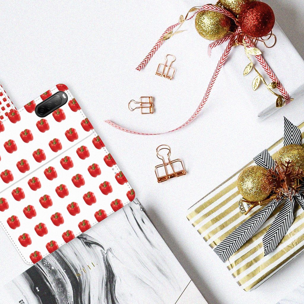 Er zit pit in jouw Sony Xperia 10 IV Book Cover dankzij dit design met rode paprika’s. Paprika’s zijn er in allerlei kleuren en vormen en ze hebben gemeen dat ze heel erg gezond zijn. De rode paprika’s op deze case staan op een grijs met witte geblokte achtergrond en vormen een opvallende verschijning. Heb jij ooit iemand in je nabije omgeving rond zien lopen met een design hoesje met rode paprika’s? Waarschijnlijk niet. Dit boekhoesje met rode paprika’s beschermt jouw telefoon aan alle zijden en beschikt over verschillende opbergvakjes voor pasjes en briefgeld. De case sluit perfect af met het magnetische lipje aan de buitenkant. Zeker weten dat je met dit hoesje met rode paprika’s een smartphone accessoire te pakken hebt waarmee je jezelf in de schijnwerpers zet. De houder aan de binnenzijde van het boekhoesje met rode paprika’s is van TPU. Als je andere kleuren paprika’s op je hoesje wilt, raden we je aan ons assortiment design hoesjes te bekijken of zelf een hoesje te ontwerpen.