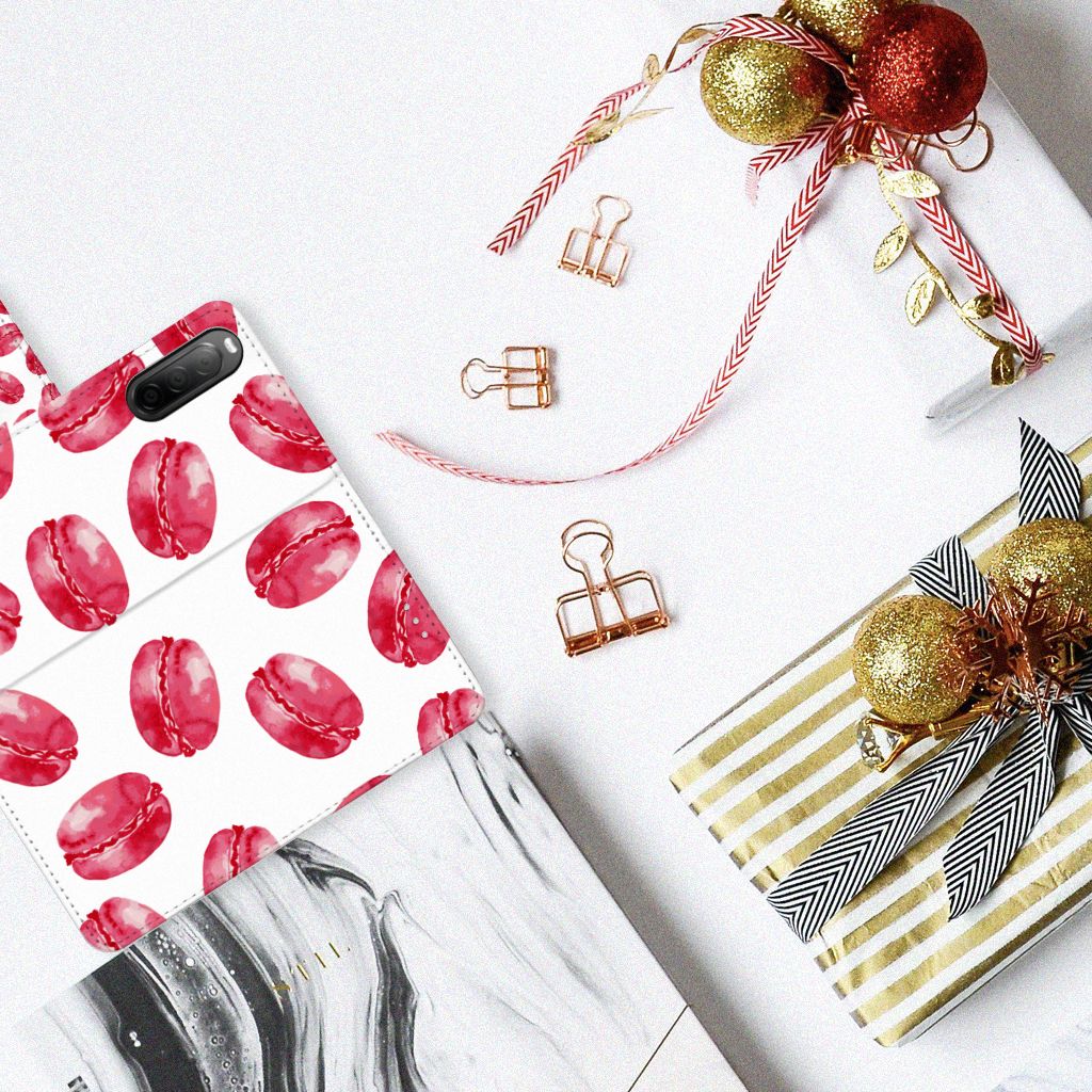 Dit hoesje met Pink Macarons is een zeer opvallende bescherming voor jouw smartphone. Macarons zijn Franse koekjes: kleine, rond en luchtig. Ze worden in veel verschillende smaken gemaakt, herkenbaar aan de verschillende kleuren zoals chocolade (donkerbruin), mokka (middenbruin), kersen (rood), pistache (groen), aardbei (roze), framboos (karmijn). Deze kleuren kun je niet allemaal zien op dit fraaie design hoesje met roze macarons. Heb je altijd al een Sony Xperia 10 IV Book Cover willen hebben met roze macarons? Grijp dan nu je kans. Een boekhoesje heeft zeer veel goede eigenschappen, zoals opbergvakjes aan de binnenkant en een magnetische sluiting in de vorm van een lipje aan de buitenzijde. Dit design hoesje met roze macarons wordt aan alle zijden bedrukt, zelfs het lipje krijgt een afbeelding van een roze macaron. De houder aan de binnenkant van het hoesje is van TPU.