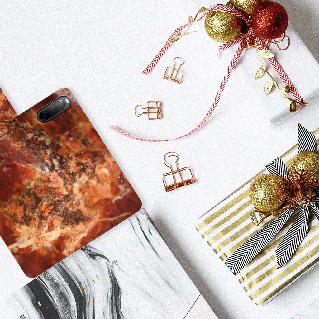 Sony Xperia 10 IV Bookcase met pasjes Marmer Bruin