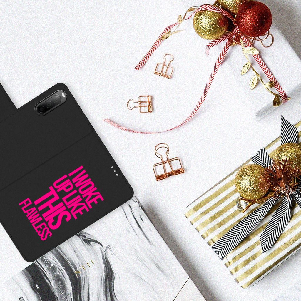 Met dit zwarte Sony Xperia 10 IV Hoesje met naam met paarse tekst heb je een geweldige bescherming van je smartphone in handen. Dit zwarte hoesje met Woke Up tekst is een must voor jouw smartphone. Met dit design hoesje tekst val je ook zeker op. Je weet ook zeker dat het hoesje exclusief is. Het design is gemaakt door B2C Telecom. Het hoesje heeft verschillende vakjes en is aan alle zijden bedrukt. Ook het lipje aan de buitenkant kan worden bedrukt. De houder is van TPU, de buitenzijde van PU-leer. We willen je er ook op wijzen dat je zelf een hoesje kunt ontwerpen, met eigen beelden en teksten. Met onze Phone Case Designer kun je zelfs opvallende effecten, patronen en clip arts aan het ontwerp toevoegen.